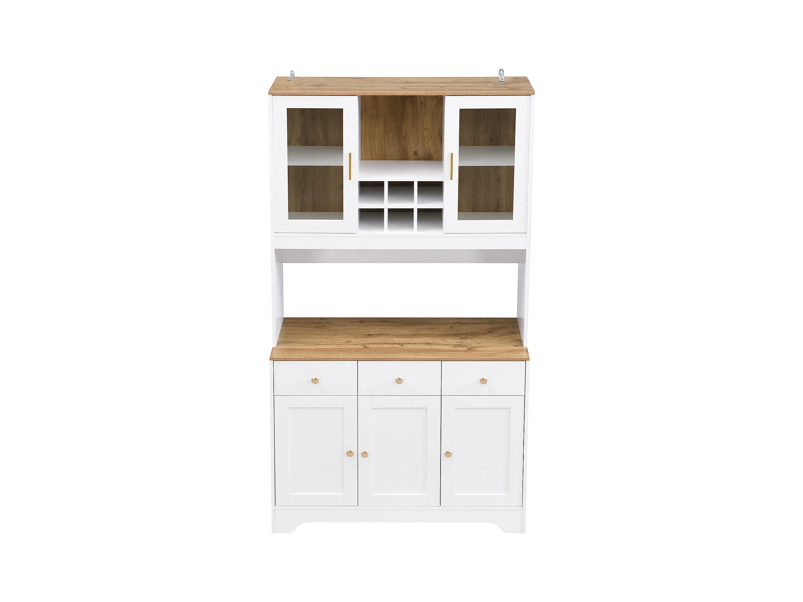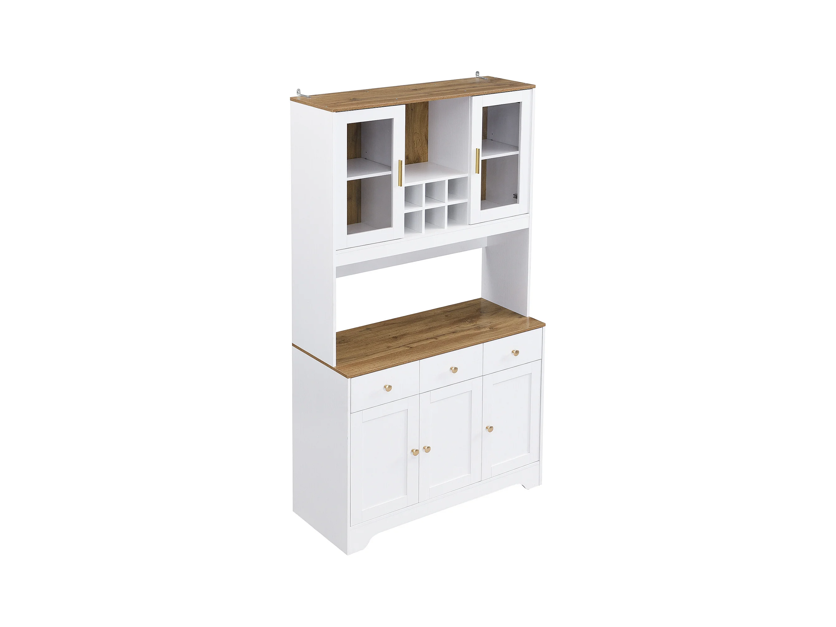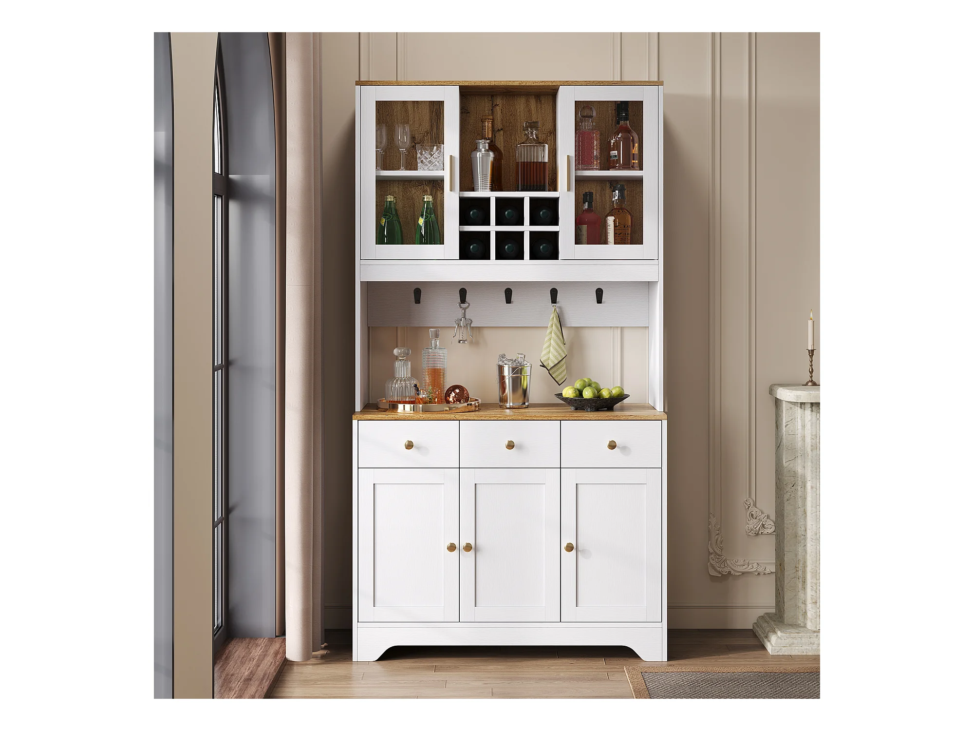 Vitrine 94.5x30x175.5 cm - 3 lades en 5 deuren - houten look blad - wit