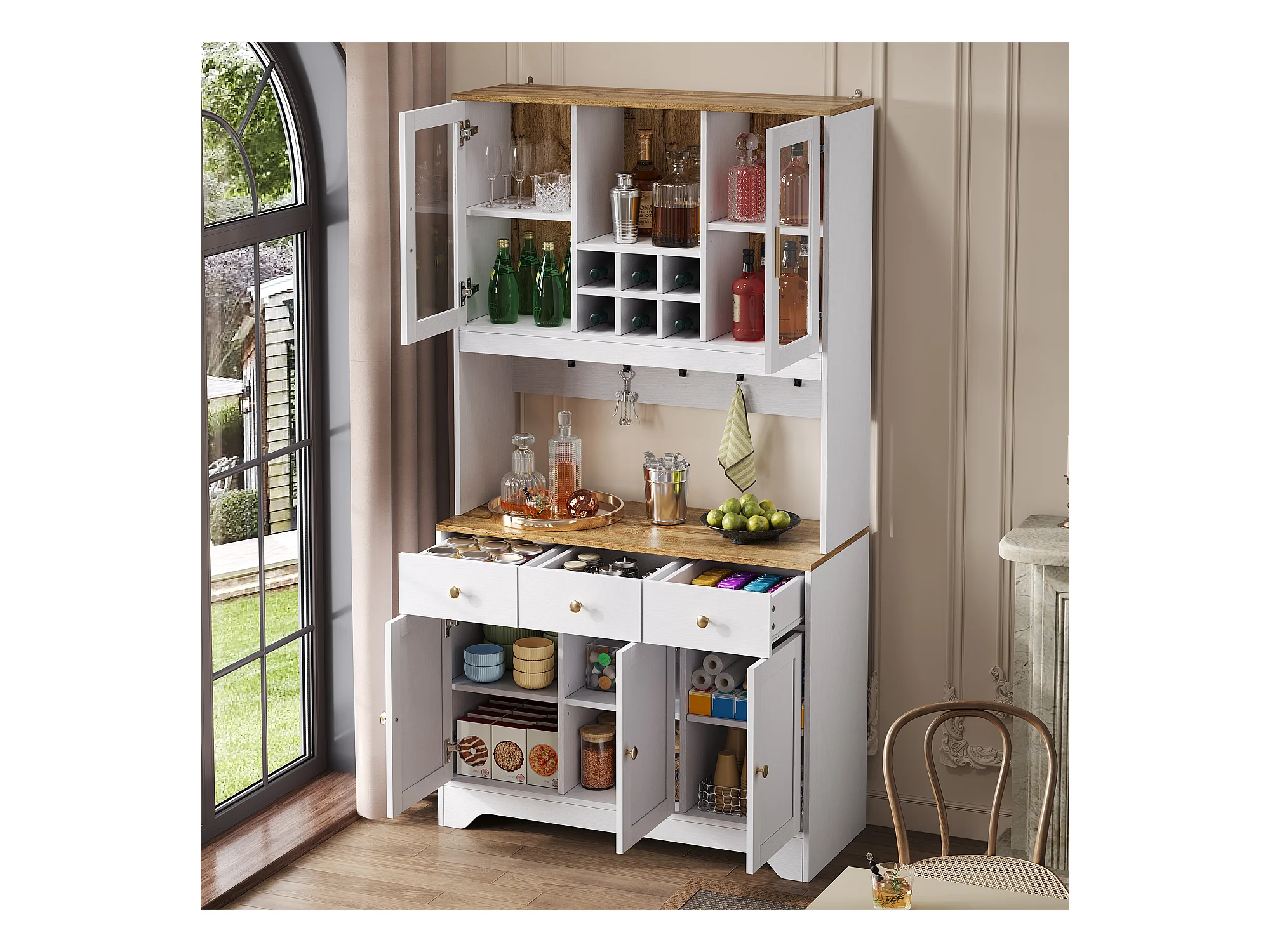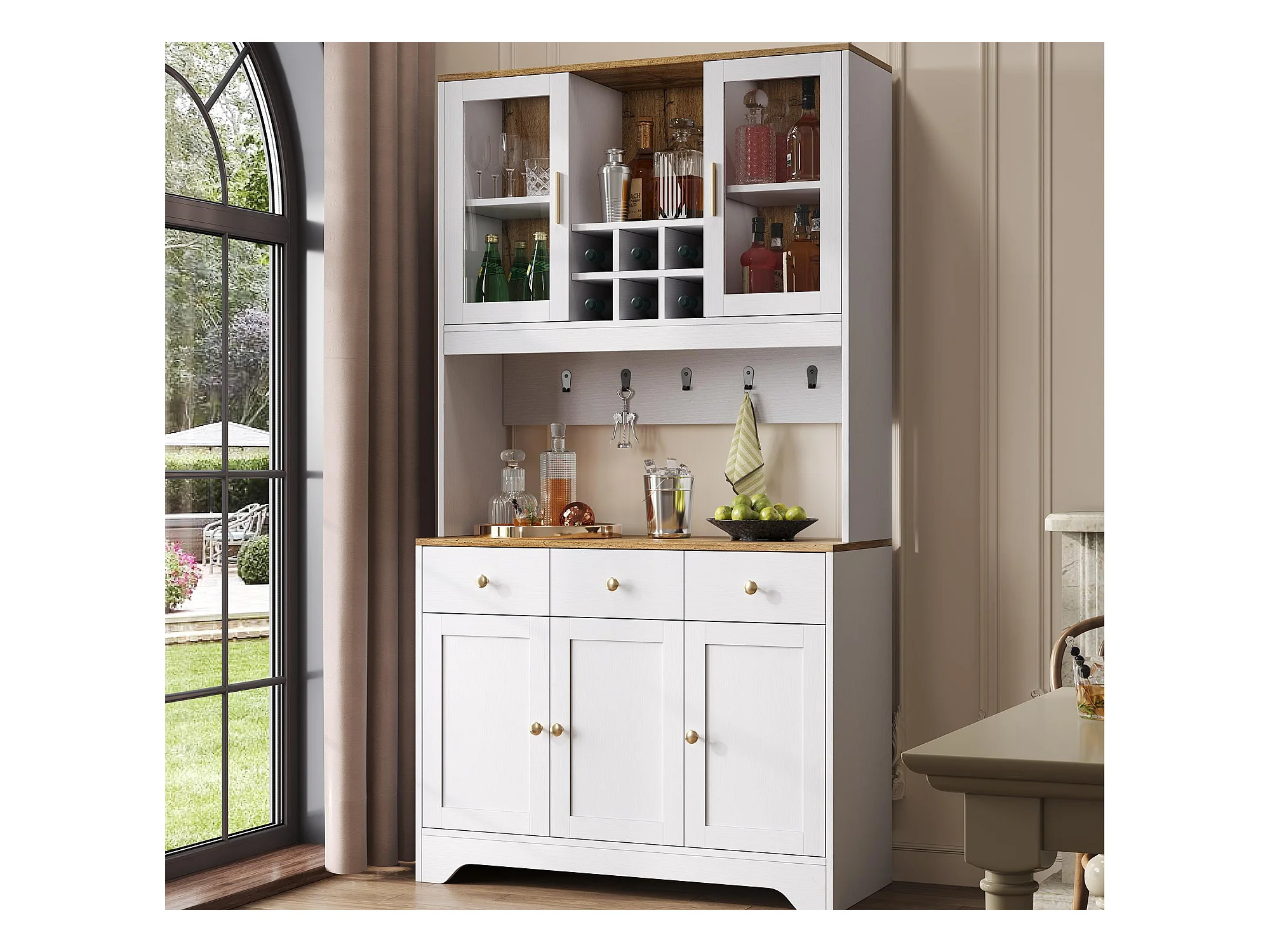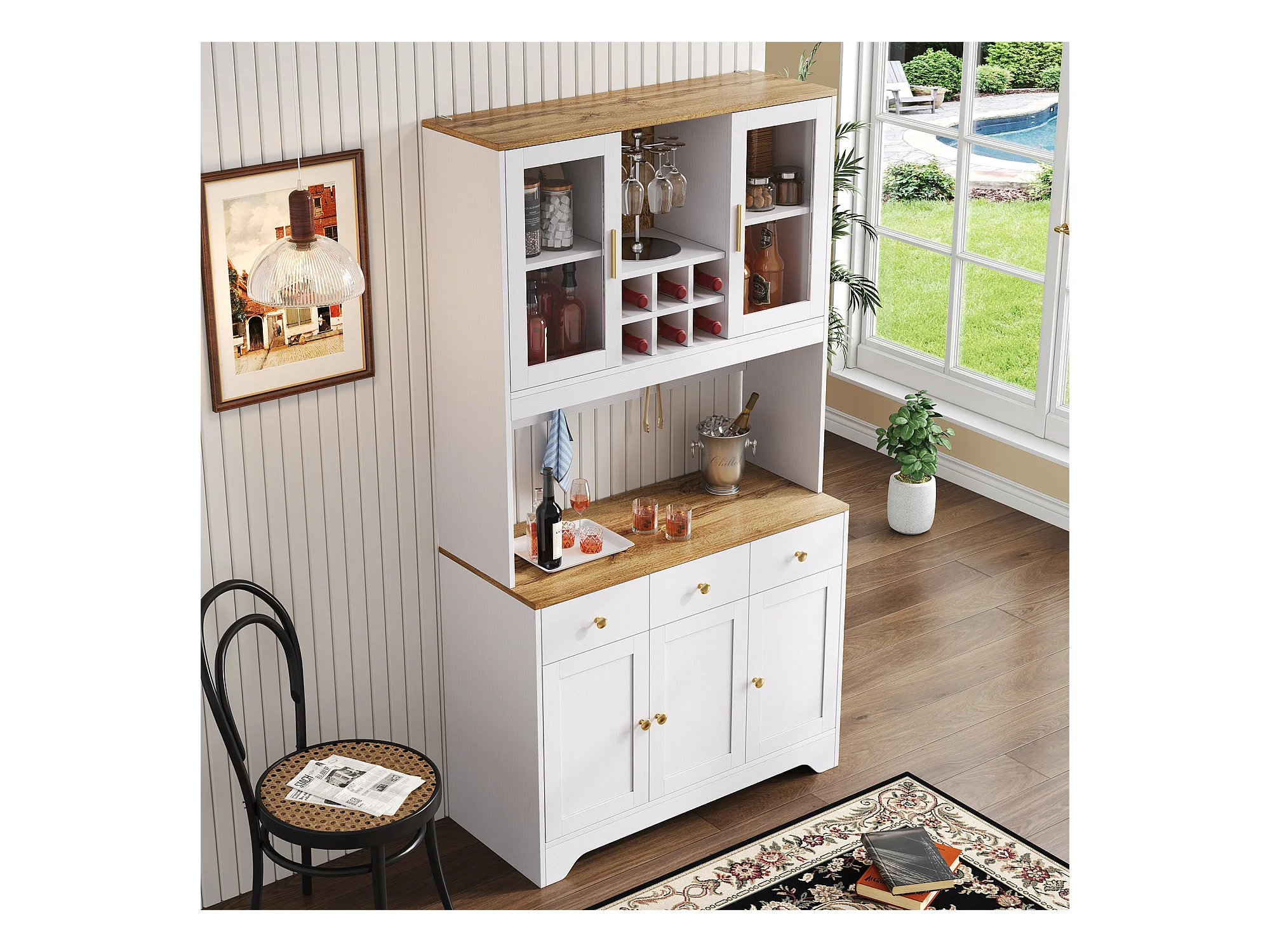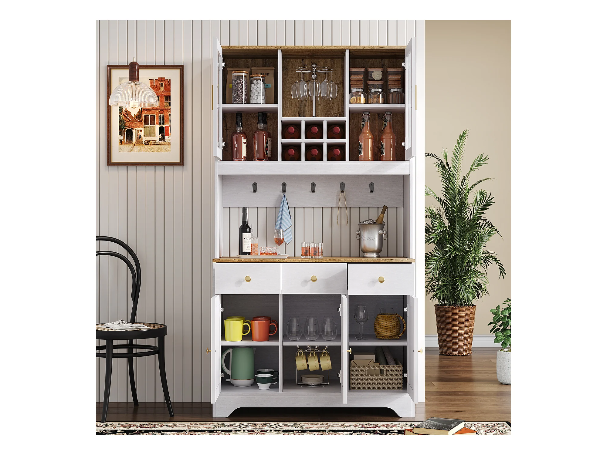 Vitrine 94.5x30x175.5 cm - 3 lades en 5 deuren - houten look blad - wit