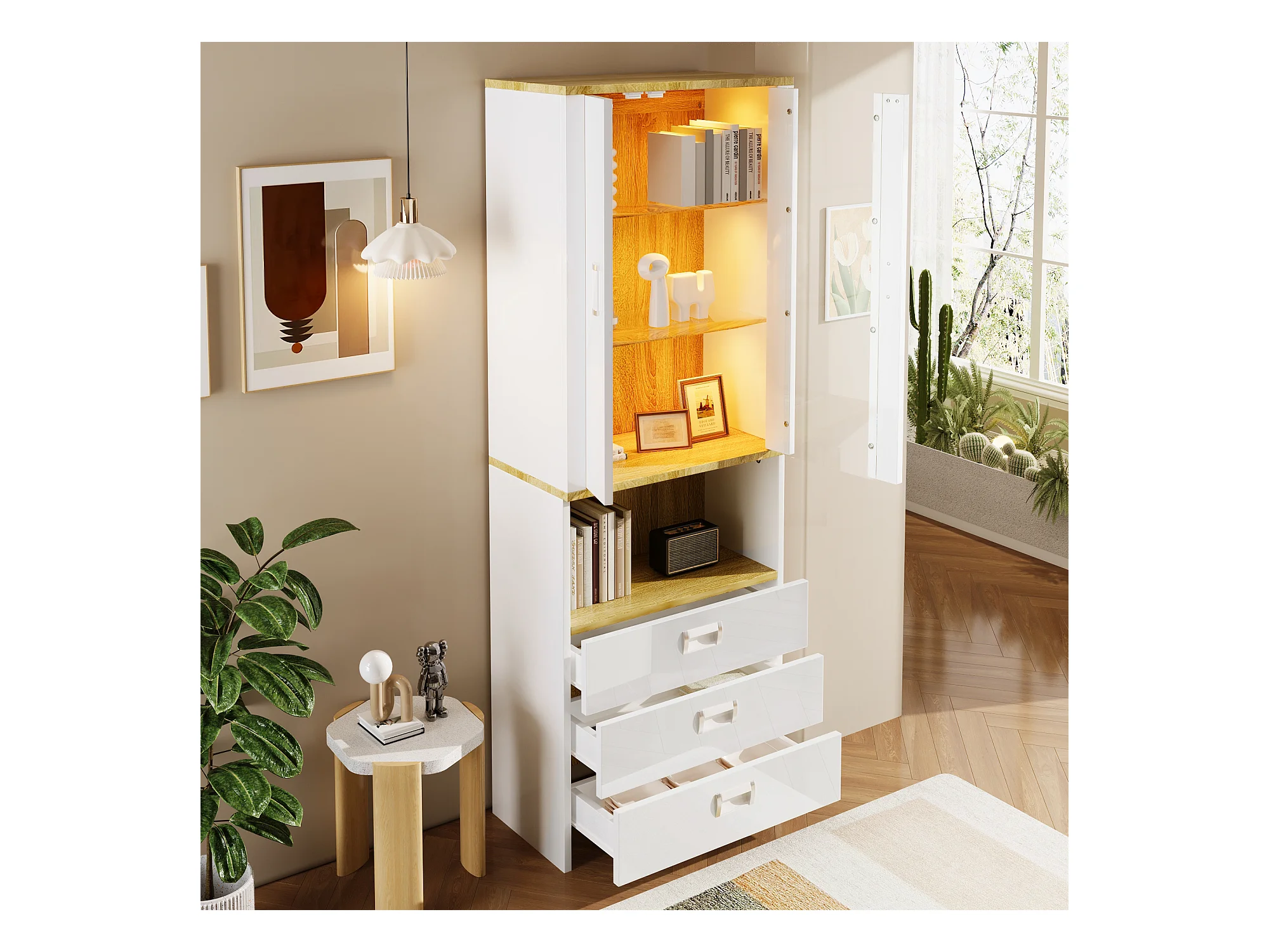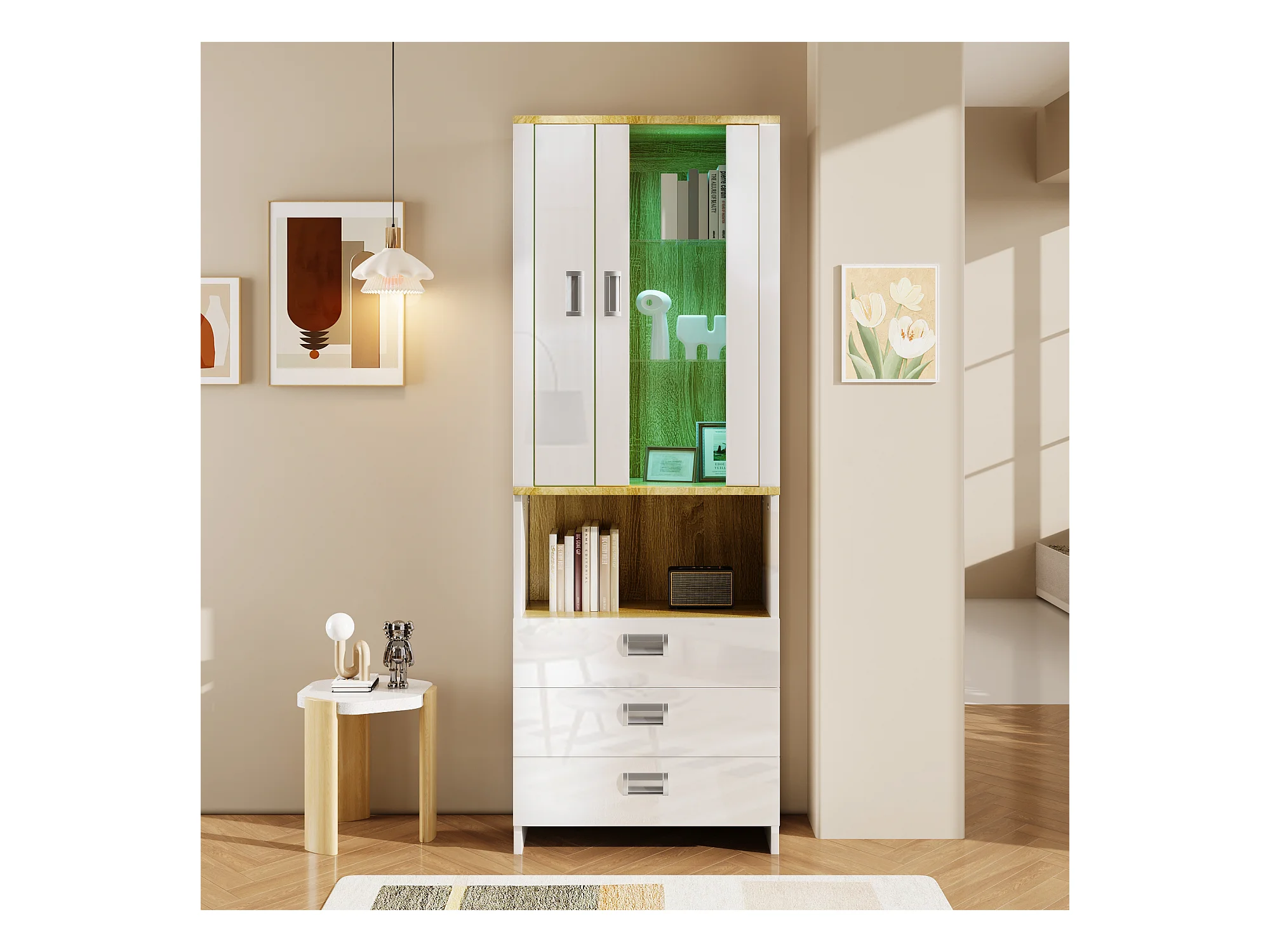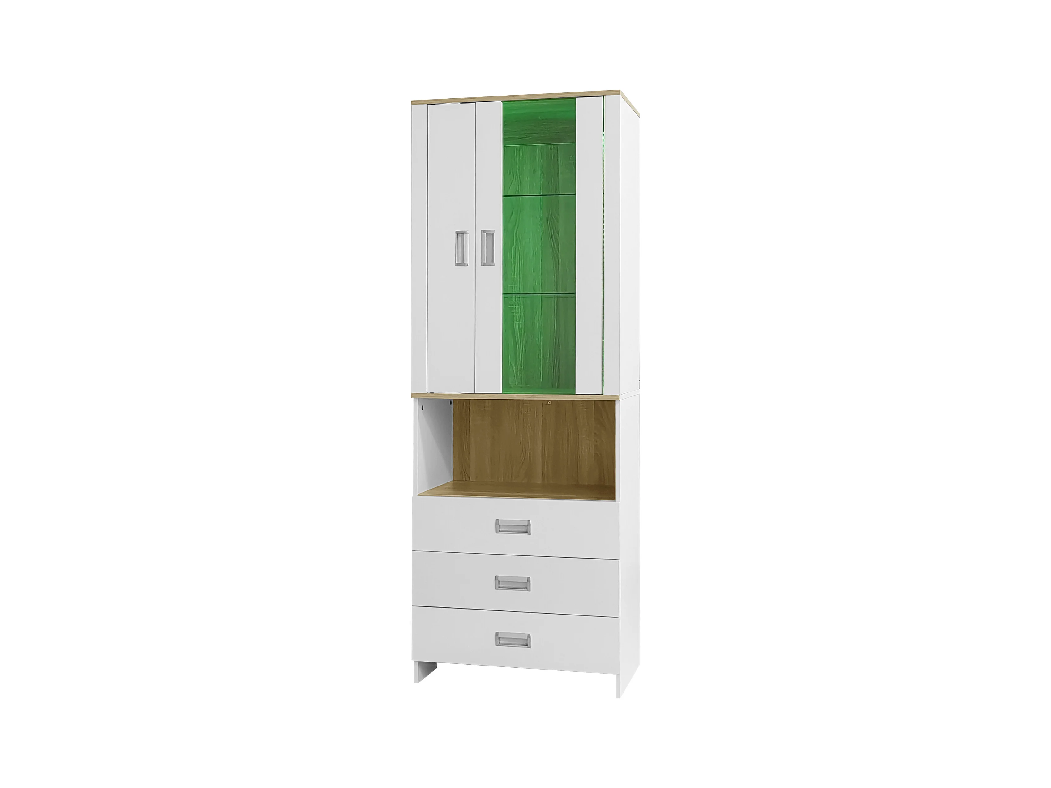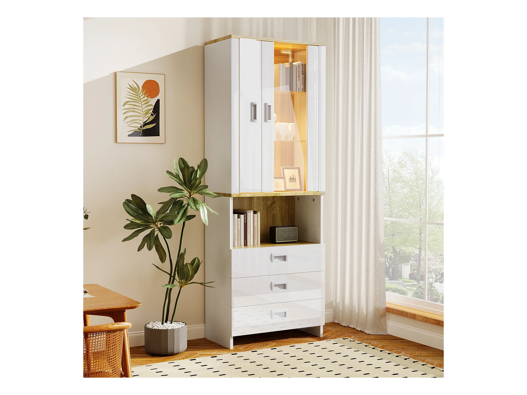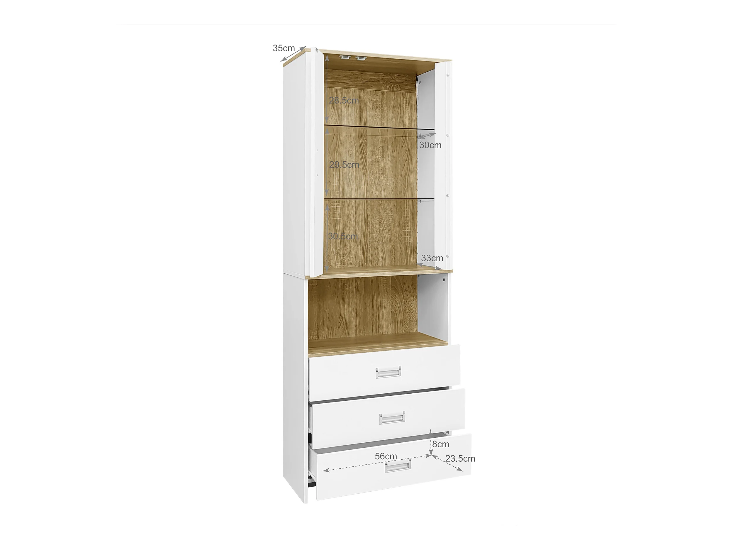 Vitrine met 2 deuren, 3 lades en een vak - 65 x 35 x 181,5 cm - LED's - MDF en spaanplaat - Wit