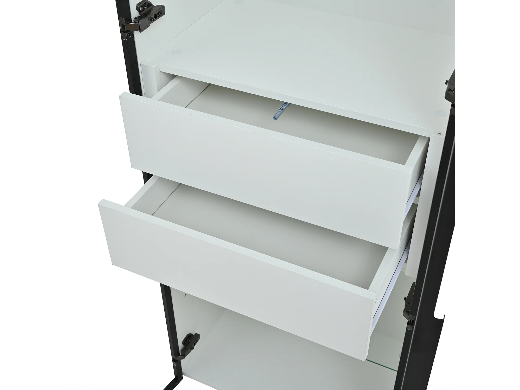 Vitrinekast 60x40x160 cm met ledverlichting. Twee verstelbare planken en twee lades. Gemaakt van MDF in zwart en wit. Voor in de woonkamer.
