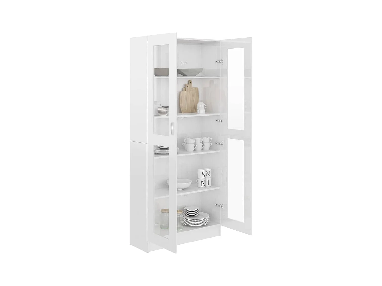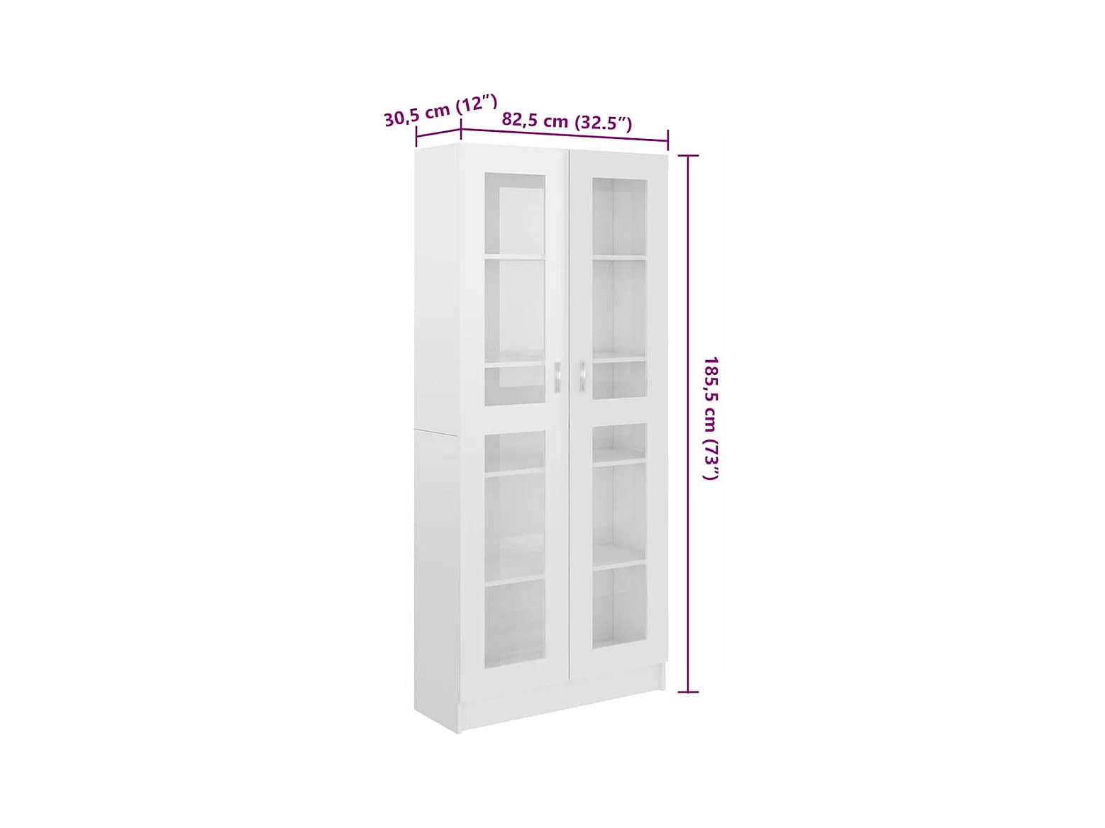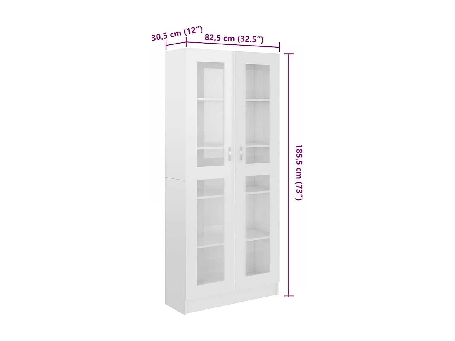 Vitrinekast 82,5x30,5x185,5 cm bewerkt hout hoogglans wit