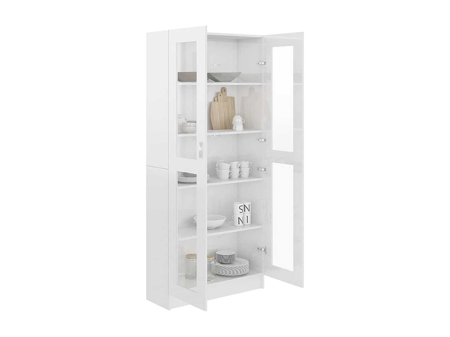 Vitrinekast 82,5x30,5x185 cm bewerkt hout hoogglans wit