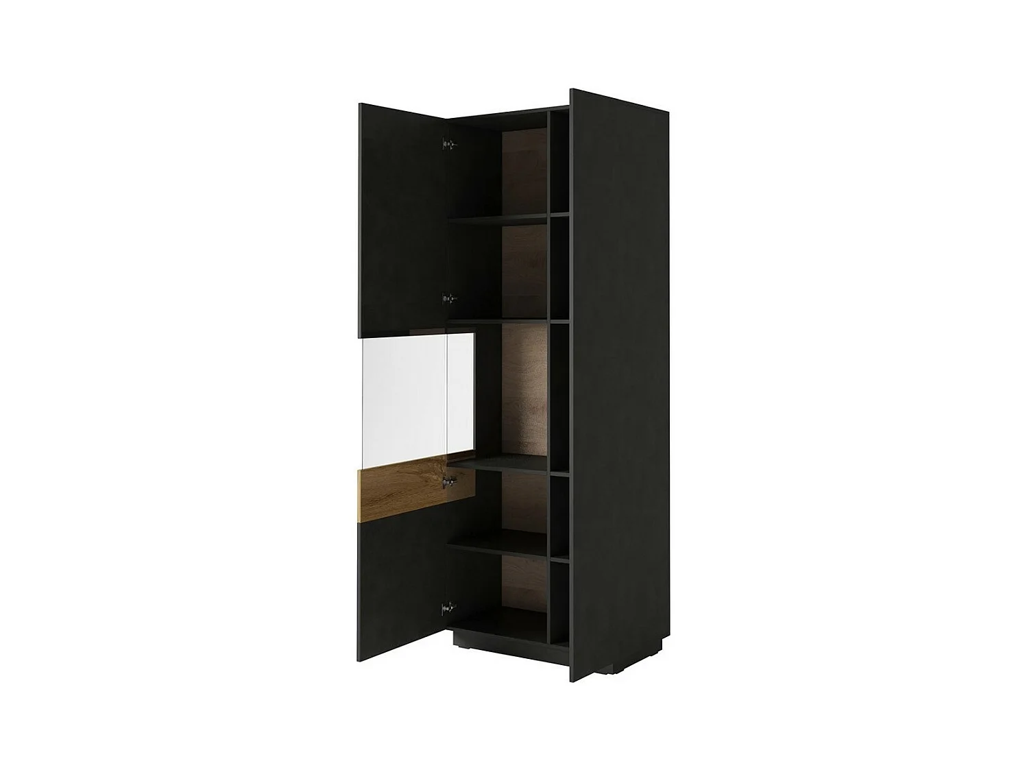 Dubbele deuren vitrinekast collectie OHIO. Kleur antracietgrijs en eik. LED inbegrepen.