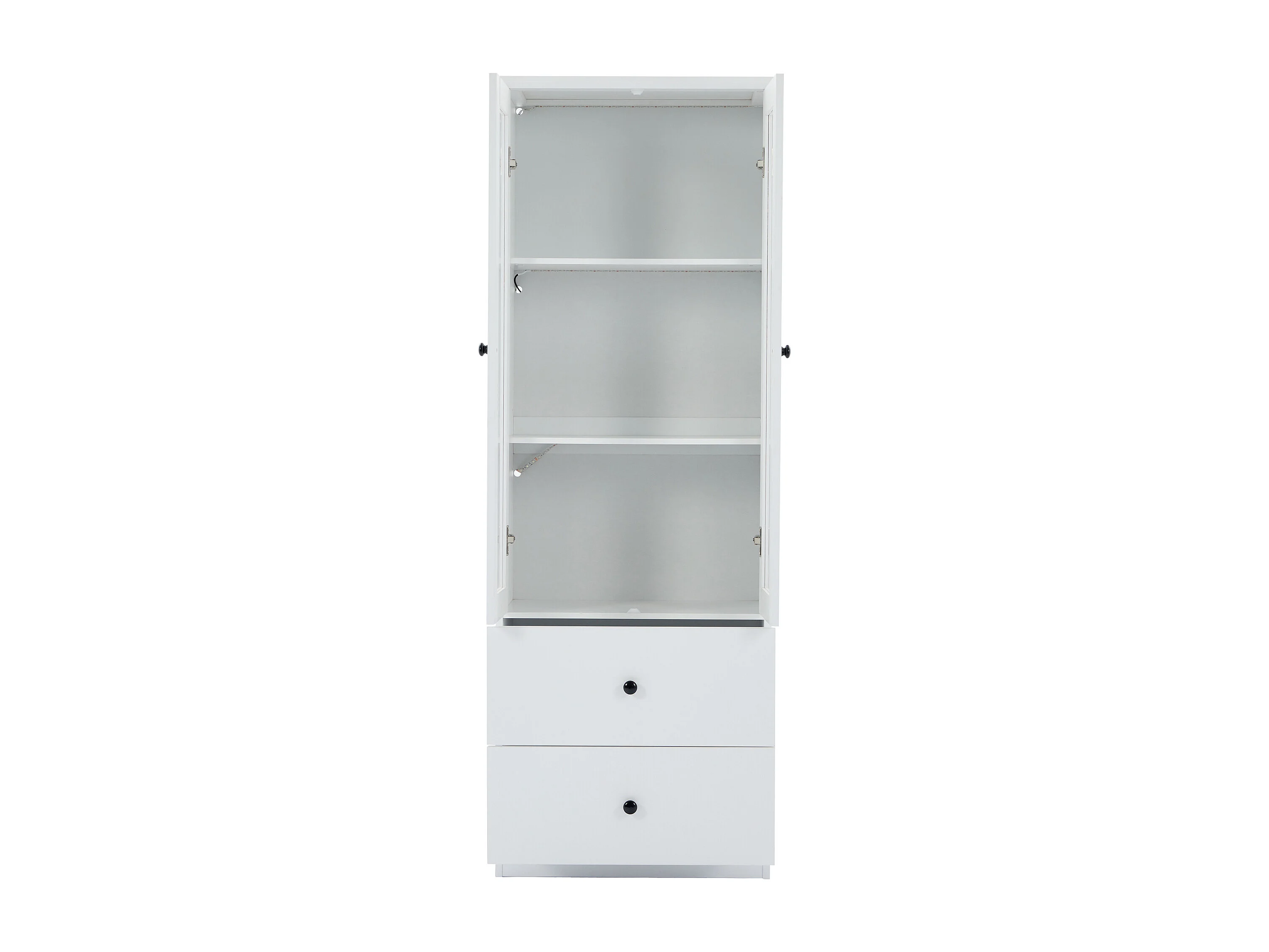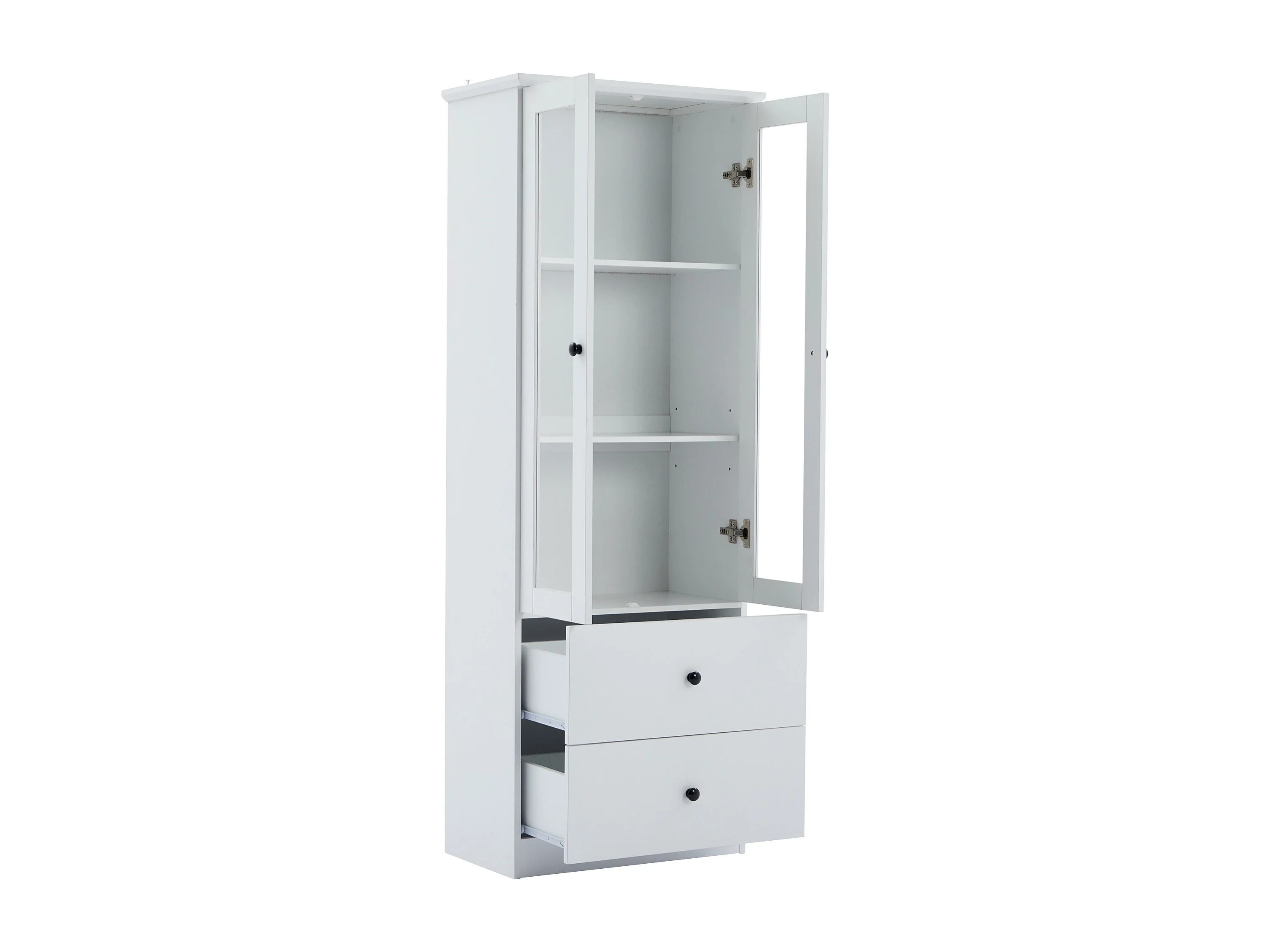Vitrinekast met 16-kleurige LED-verlichting, 2 lades en 2 glazen deuren - Wit