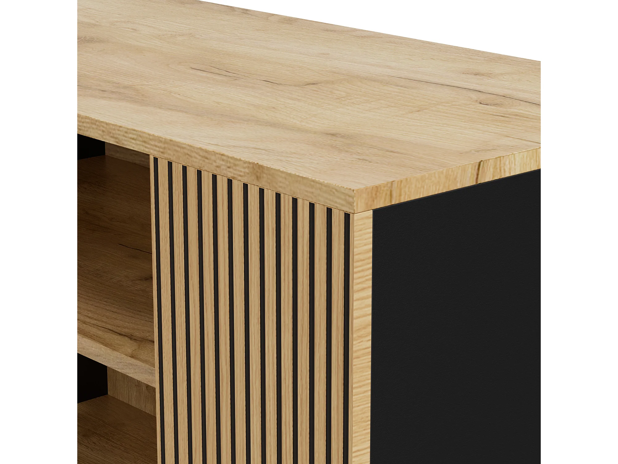Penny dressoir 2 schuifdeuren en 3 laden Hickory decor en mat zwart.