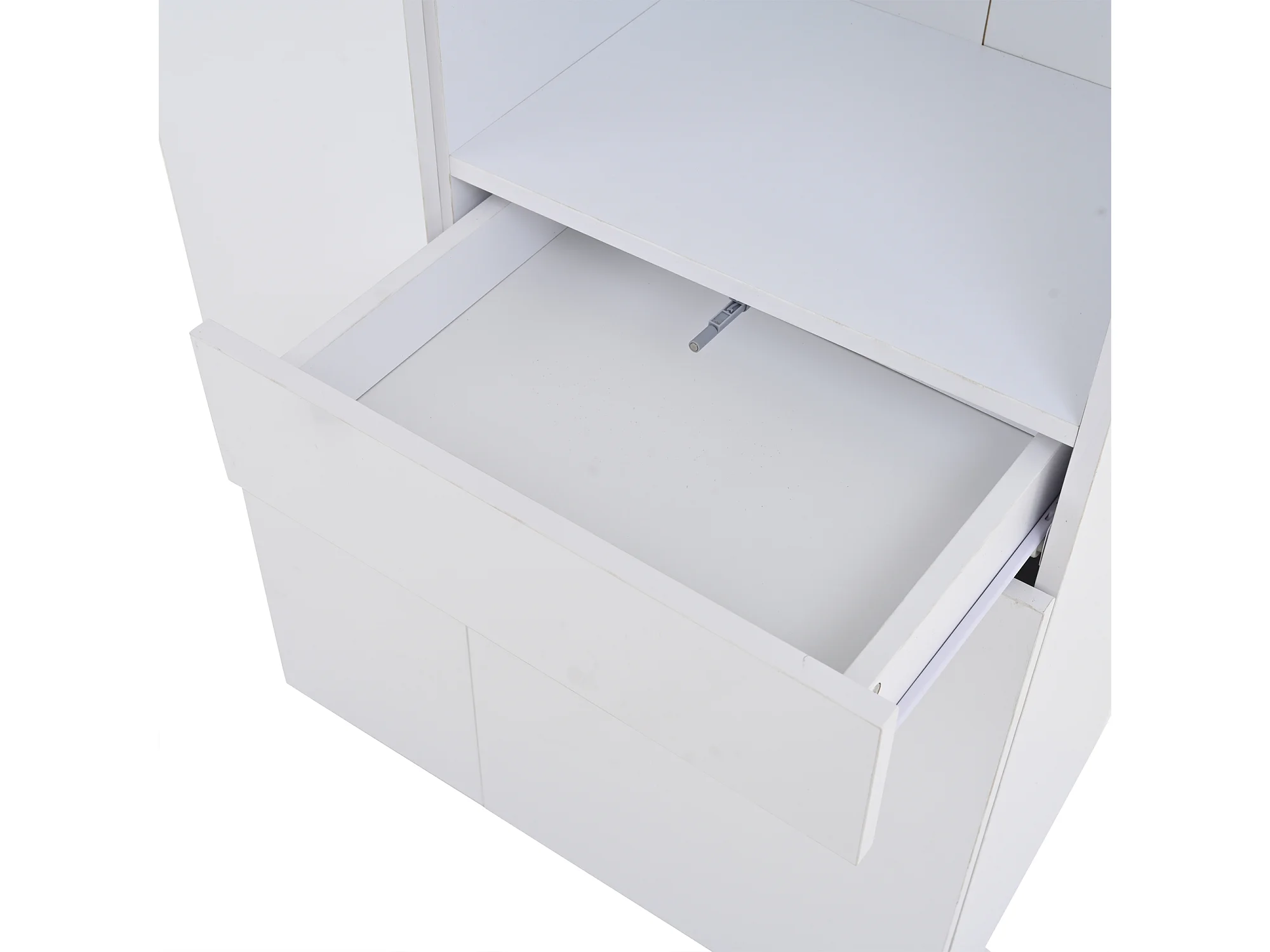 Vitrinekast met LED-verlichting, lade en 2 deuren - glanzende afwerking - Wit