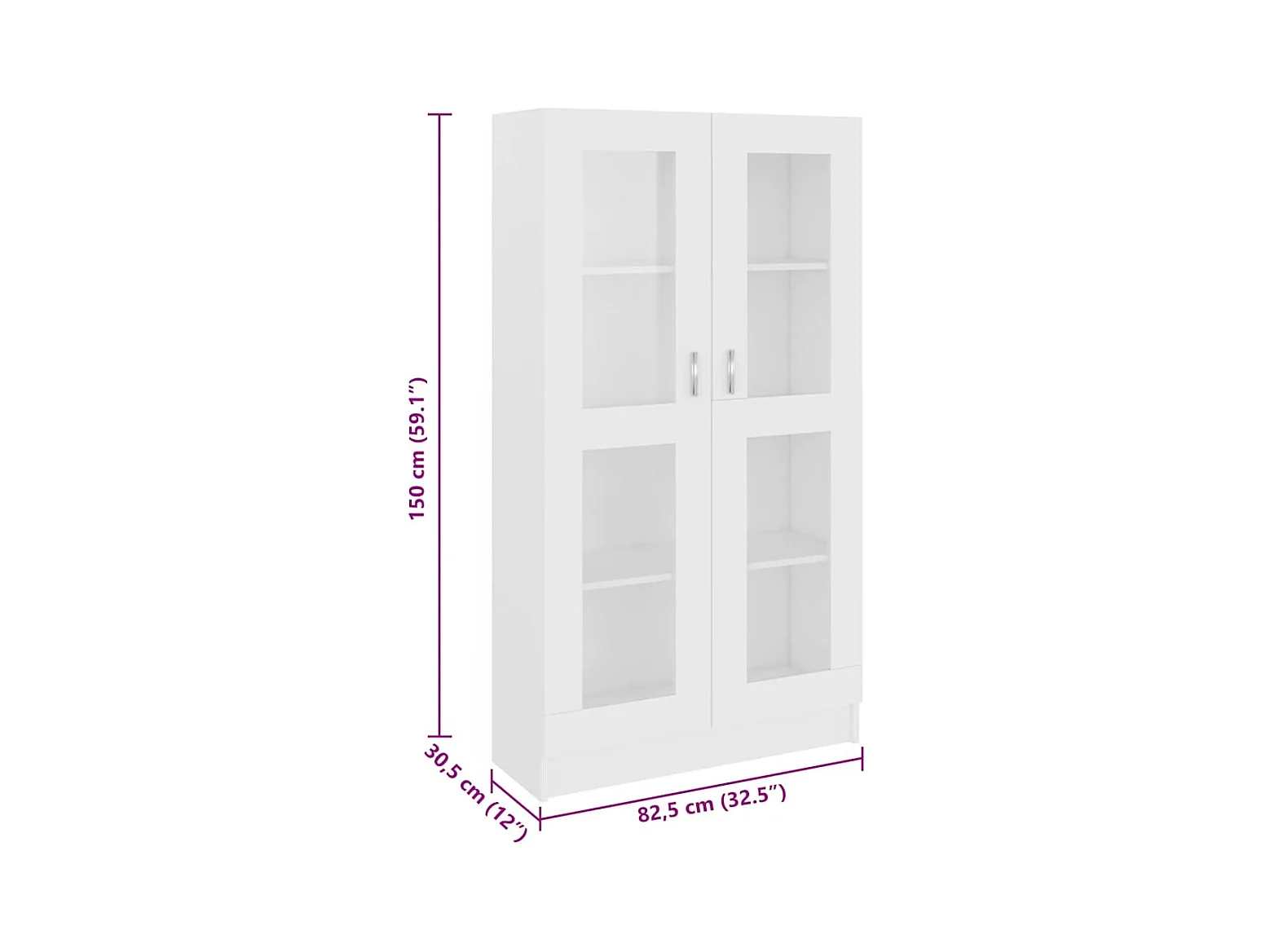 Vitrinekast Wit 82,5x30,5x185,5 cm Bewerkt hout