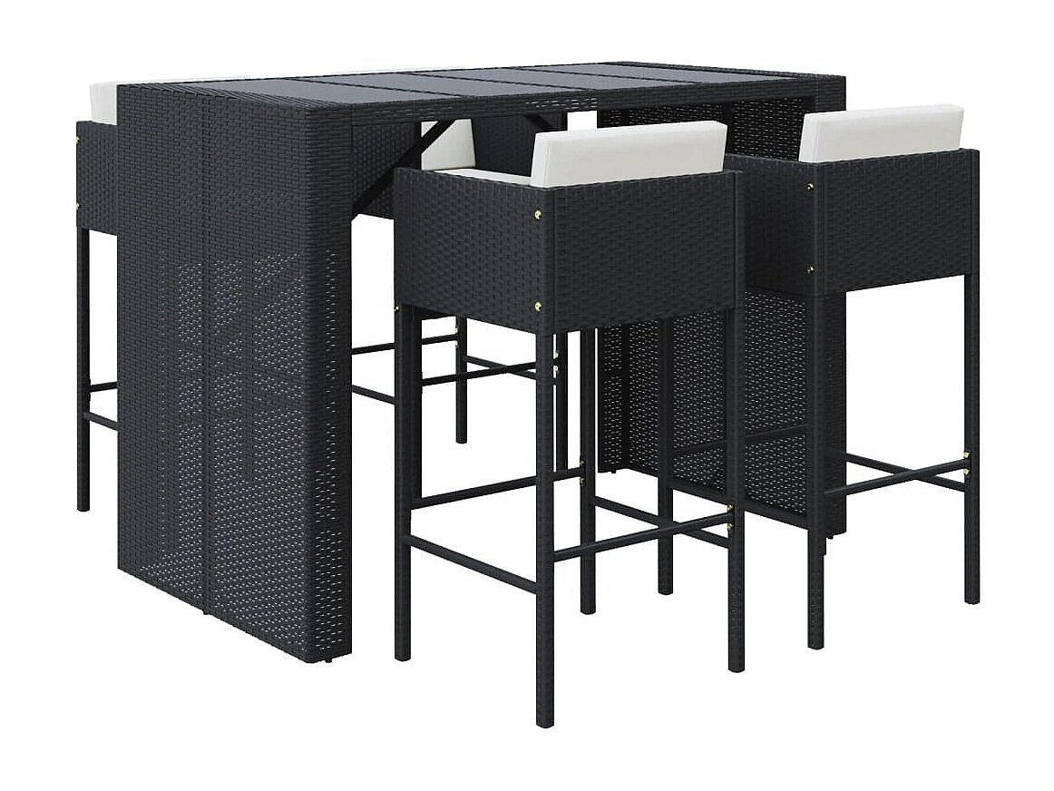 Danick 5-delige Tuinbarset met kussens poly rattan zwart