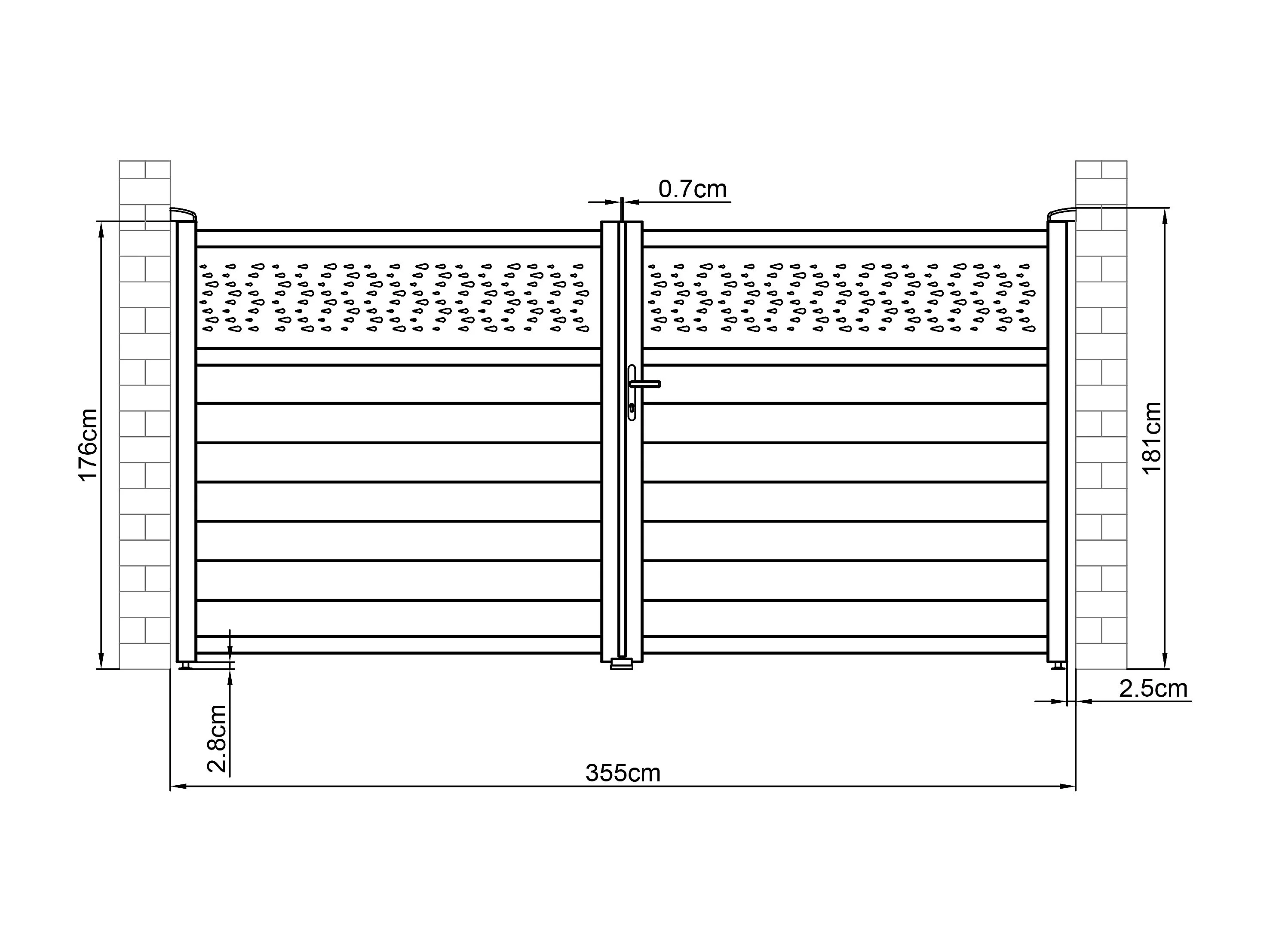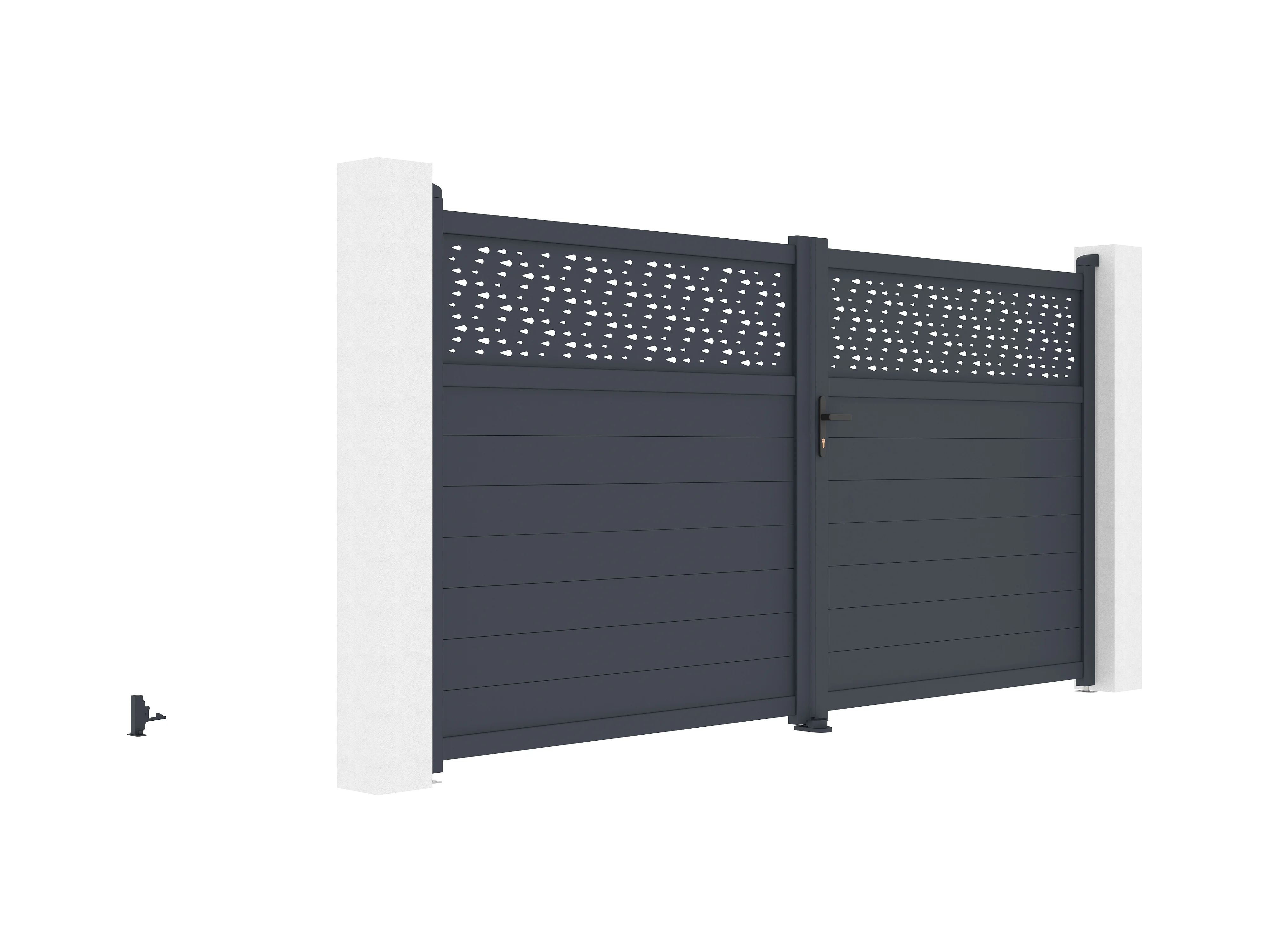 Vleugelpoort in aluminium met deels motieven L355 x H182 cm donkergrijs - BAZIO