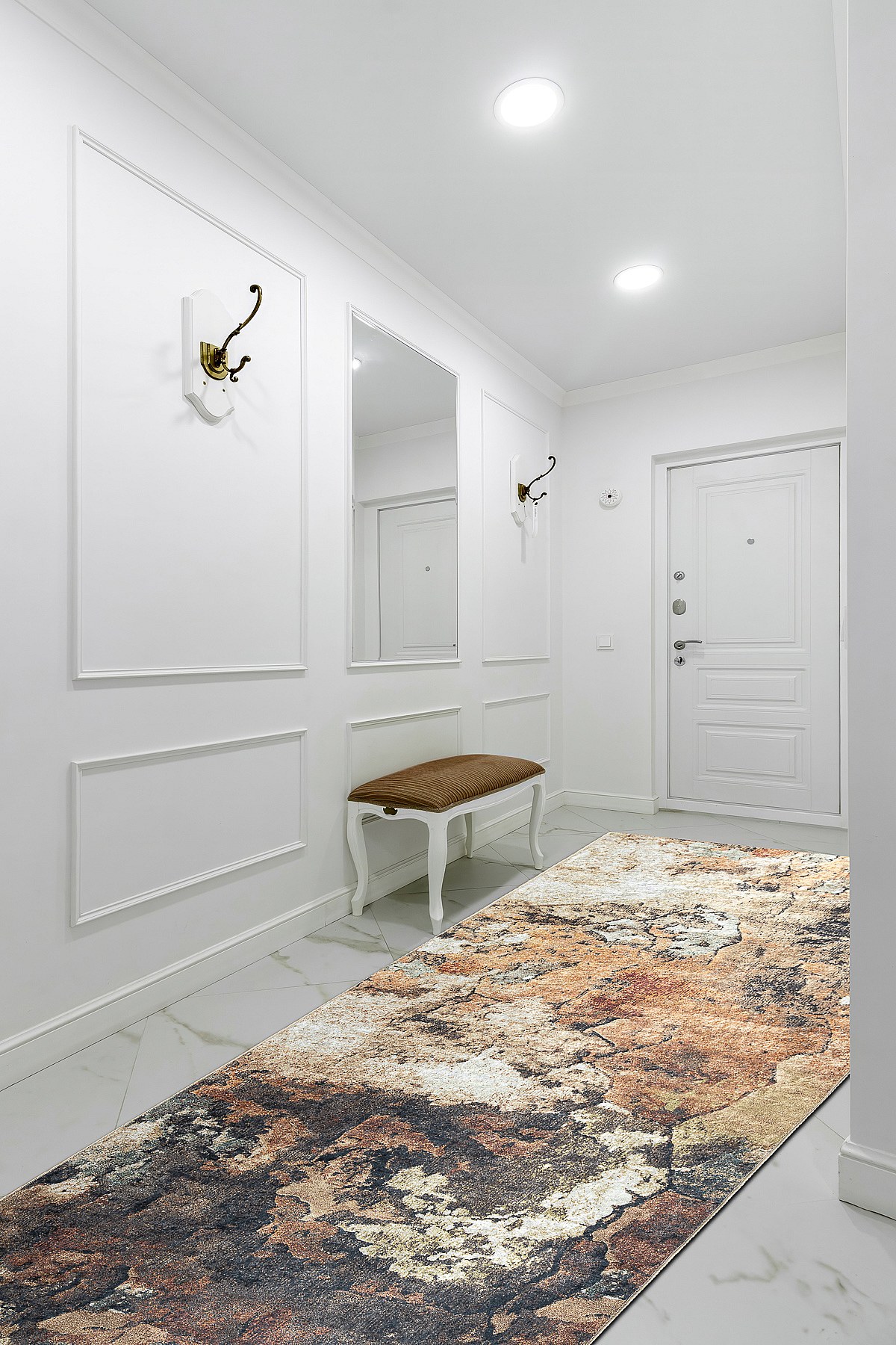 Vloerbekleding met rubber bekleed LOTUS ABSTRACT 52910 beige wasbaar 80x190 cm
