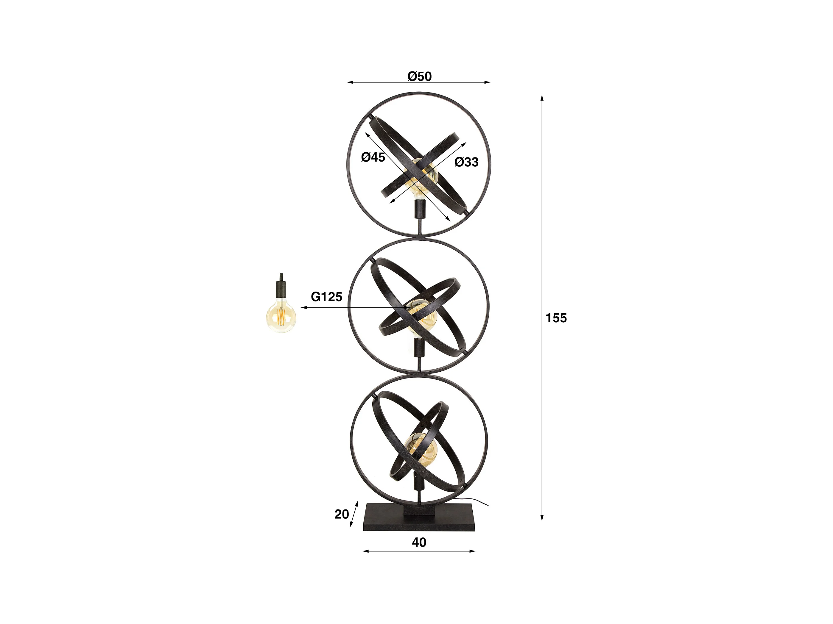 Industrieel Vloerlamp - 3 Lampen - Turn around - Zwart