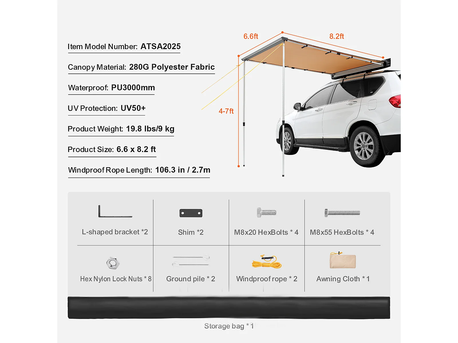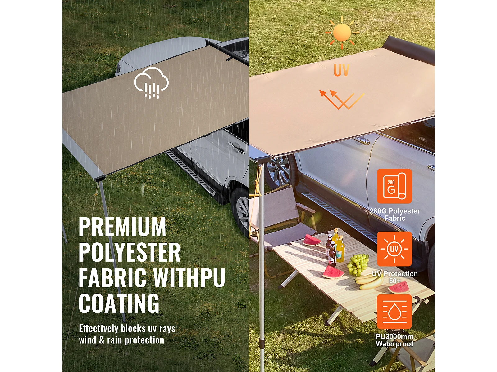Voertuigluifel SucceBuy, Schaduwdoek 200 cm x 250 cm, PU3000 mm UV50+