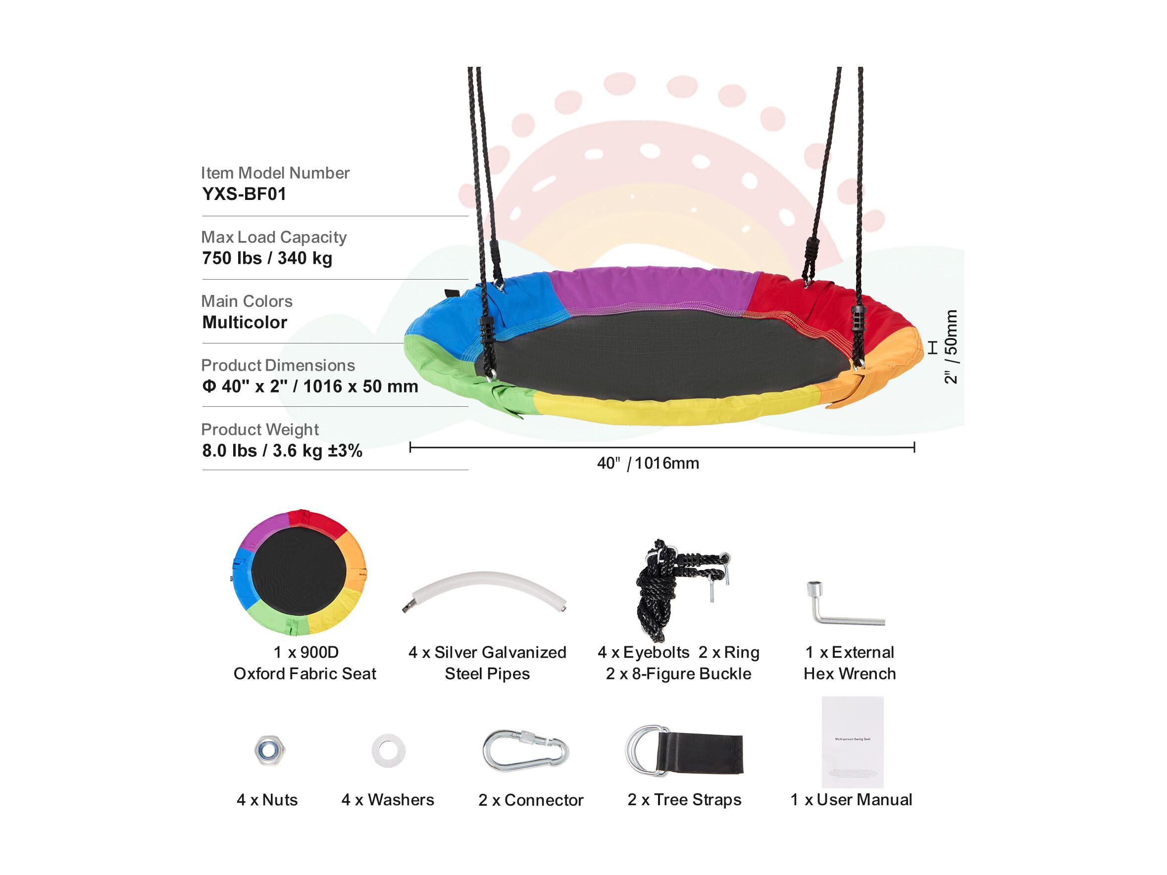 Vogelnestschommel SucceBuy 101,6 Cm, Schotelvormige Schommel, Draagvermogen Van 340,2 Kg, Oxford 900D Multicolor