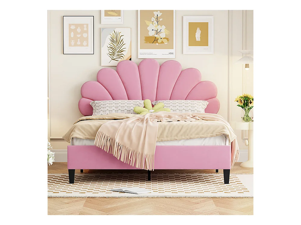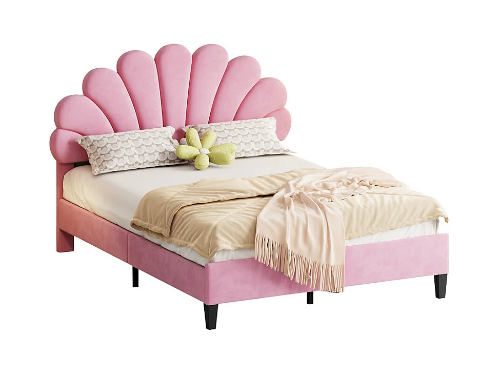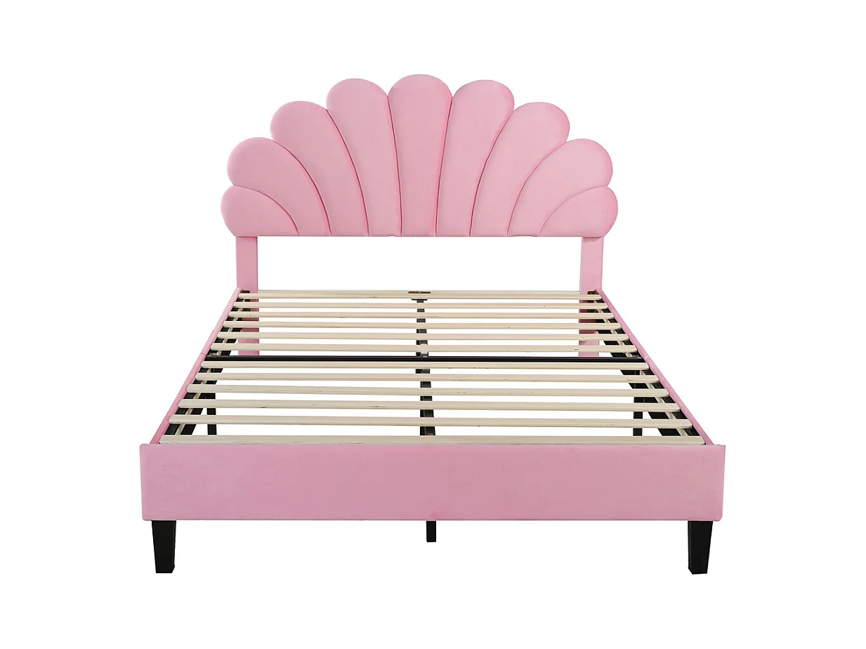 Volwassen bed 140x200 cm gestoffeerd bed met lattenbodem tweepersoonsbed roze fluweel