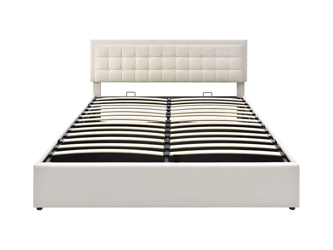 Hydraulisch gestoffeerd bed 140x200cm, opbergbed, hoofdbord met usb type-c oplaadfunctie, pu, wit, zonder matras