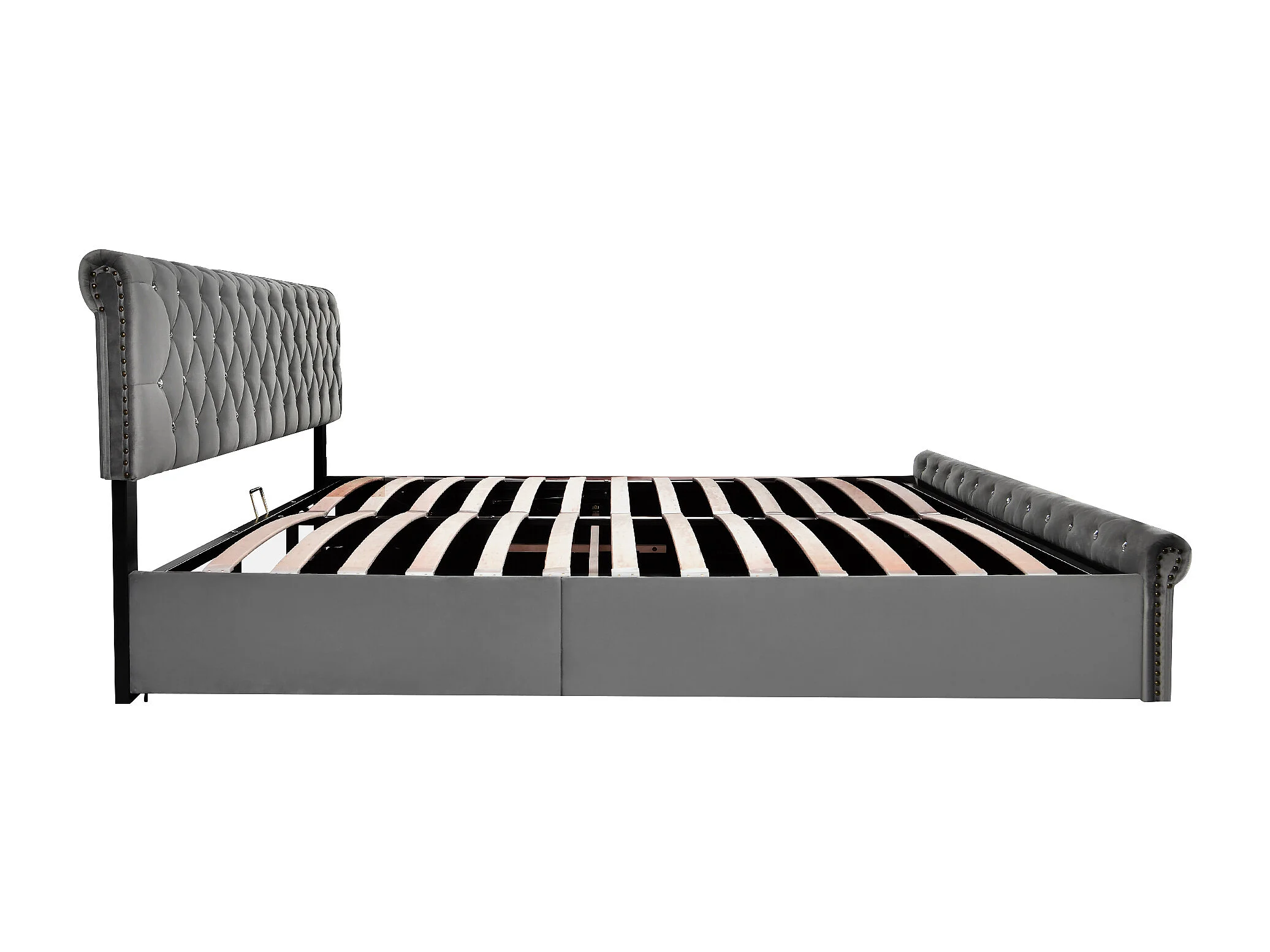 Volwassen bed 160 x 200 cm - met hoofdbord en lattenbodem - grijs fluweel - matras niet inbegrepen
