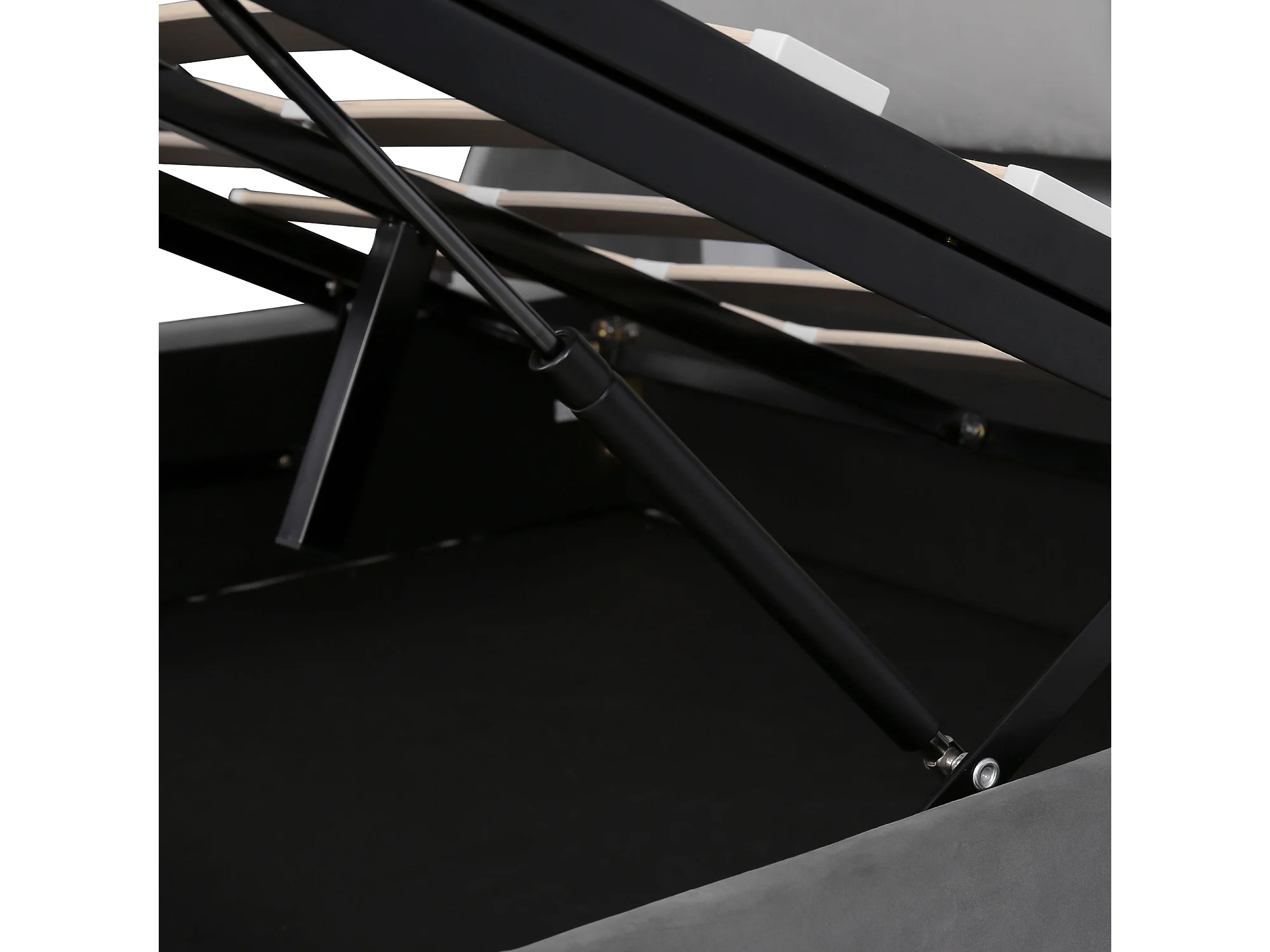 Volwassen opbergbed 140x190 cm met houten onderstel - gestoffeerd hoofdeinde - fluweel - grijs (zonder matras)