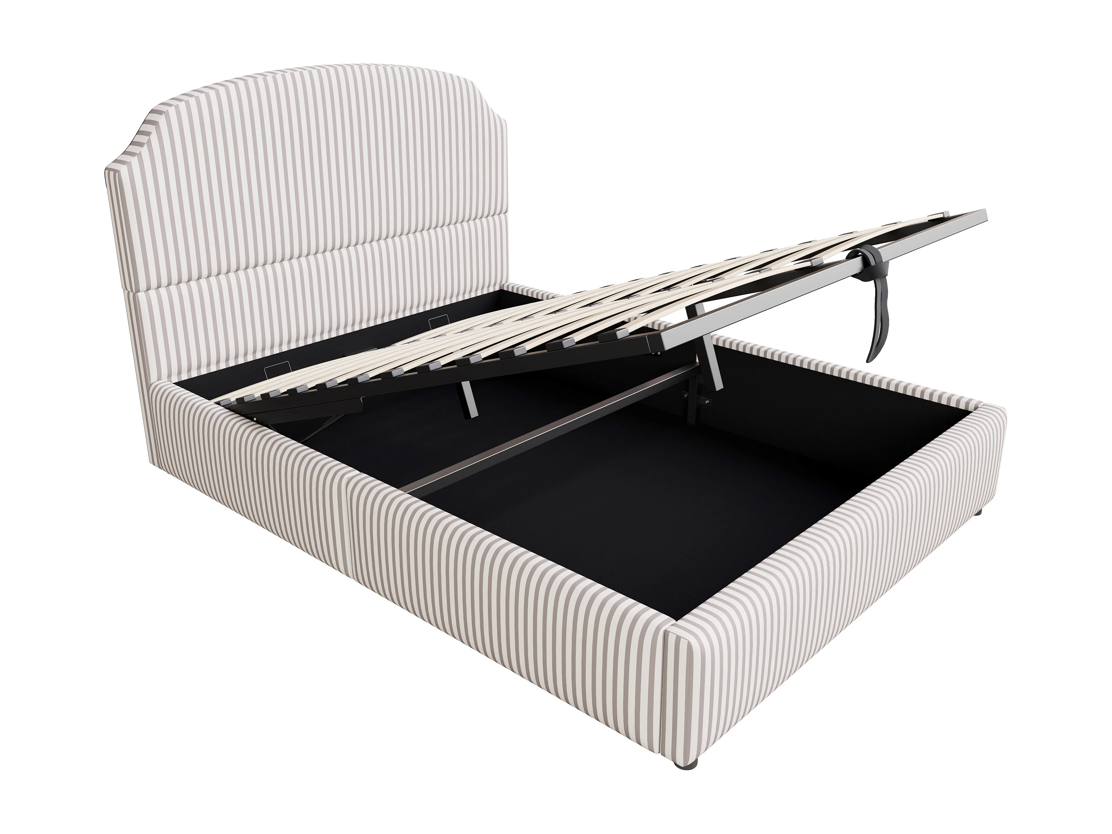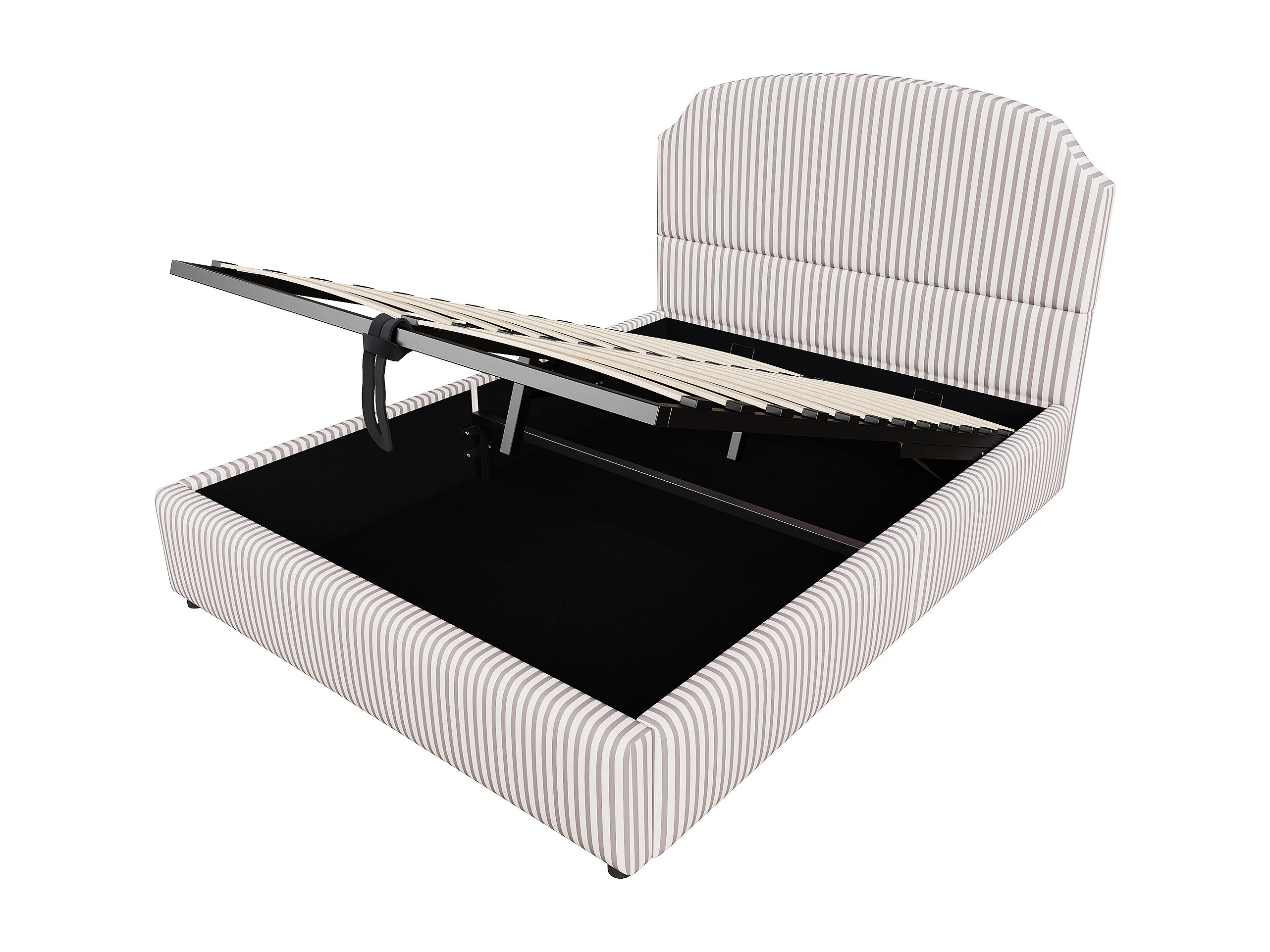 Opbergbed 140x200 cm met grote opbergruimte, met grote gestoffeerde rugleuning, gestreepte gestoffeerde stof, wit en antraciet (zonder matras)