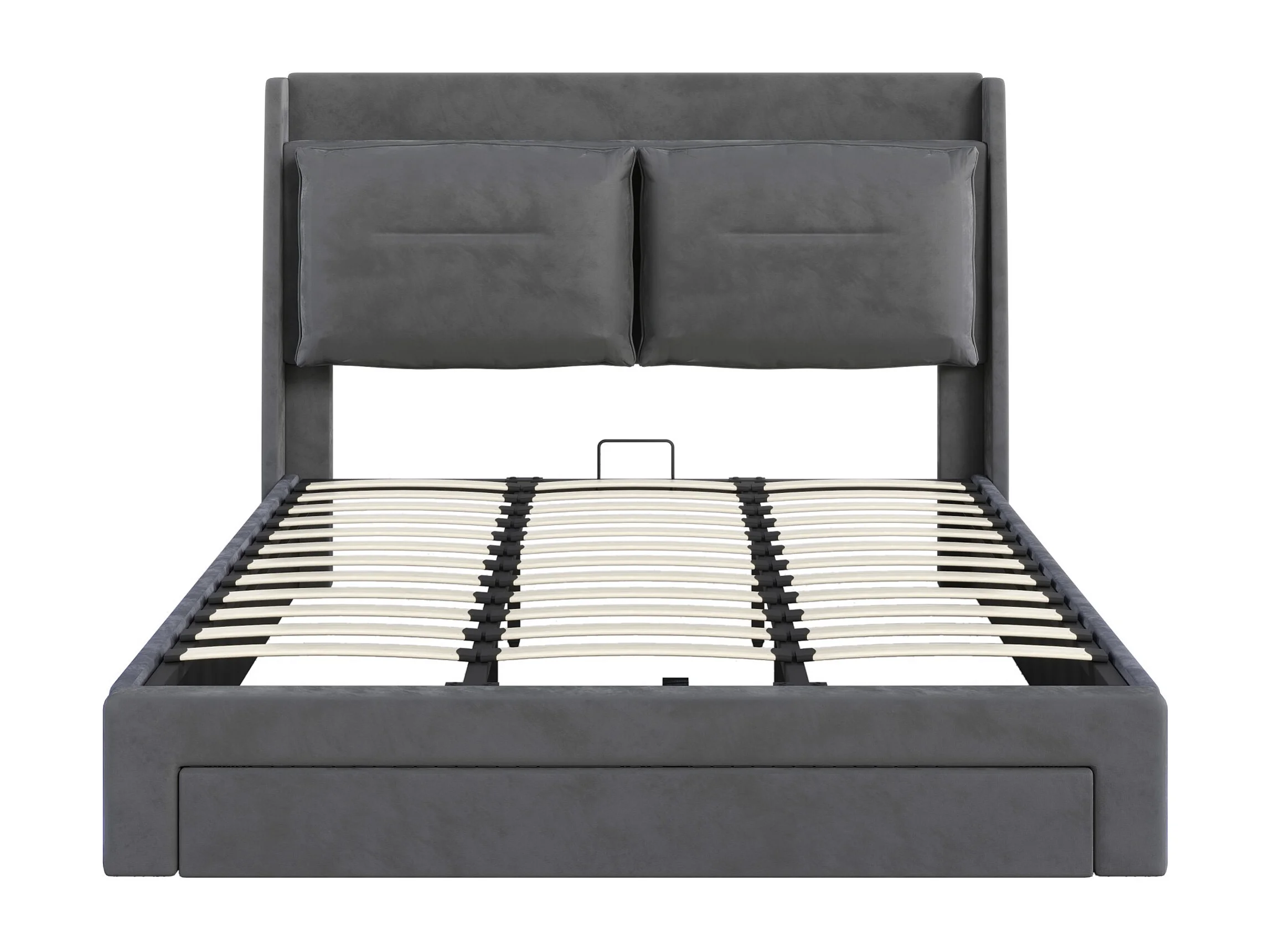 Volwassen opbergbed 180x200 cm met onderstel - gestoffeerd hoofdbord met 2-in-1 lades en LED - grijs fluweel (zonder matras)