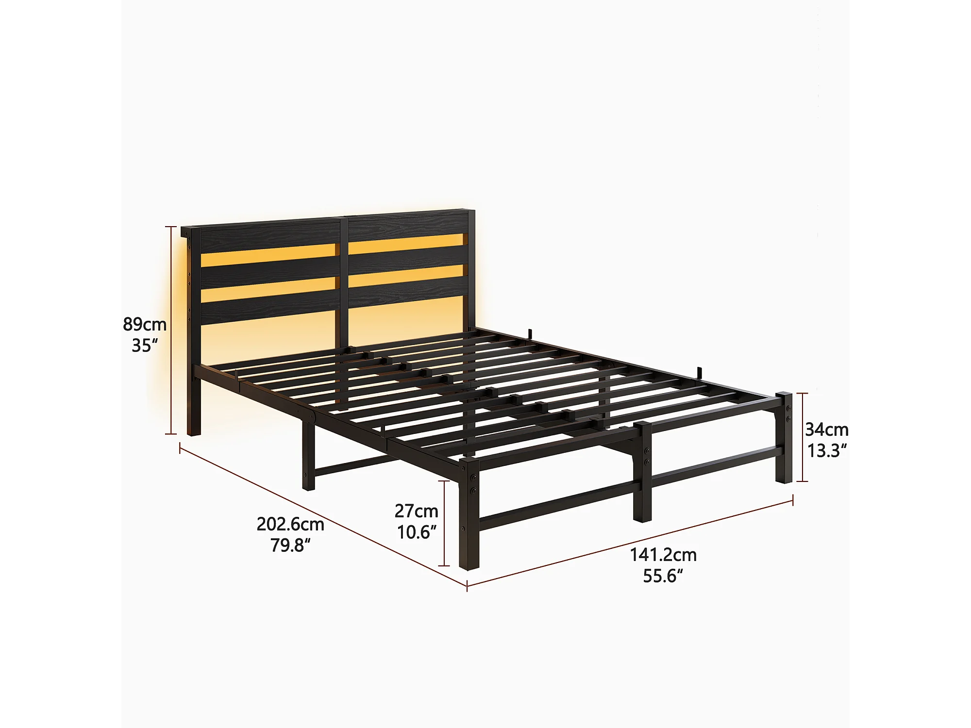 Volwassenenbed 140x190 cm - met USB-aansluiting en ledverlichting - metaal en hout - zwart - zonder matras