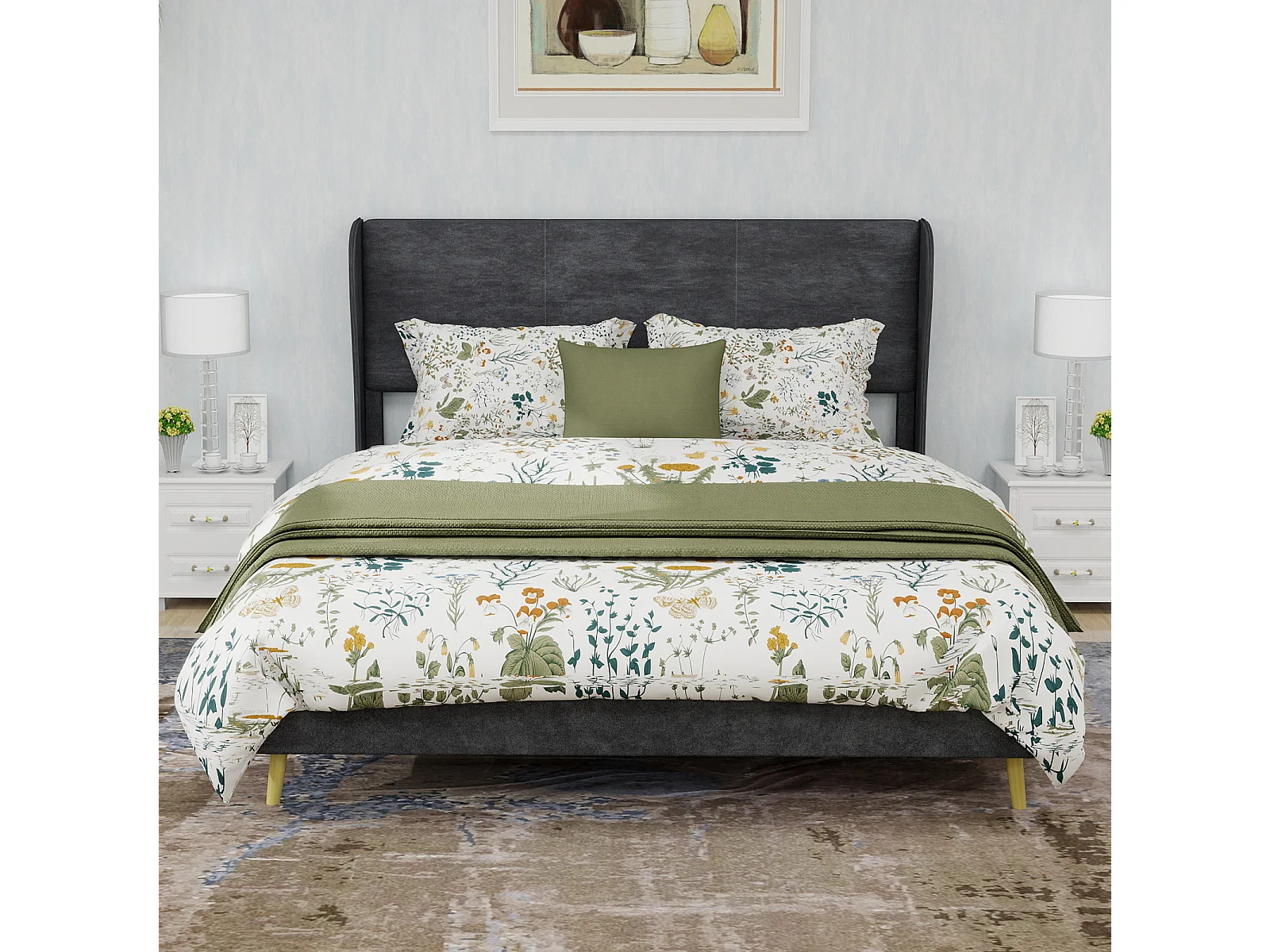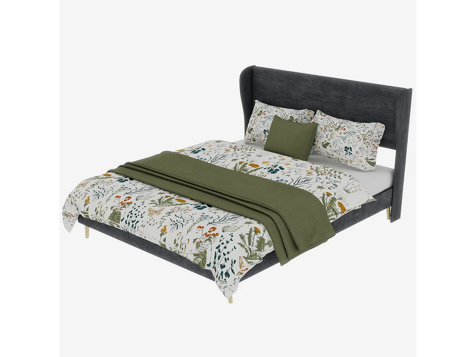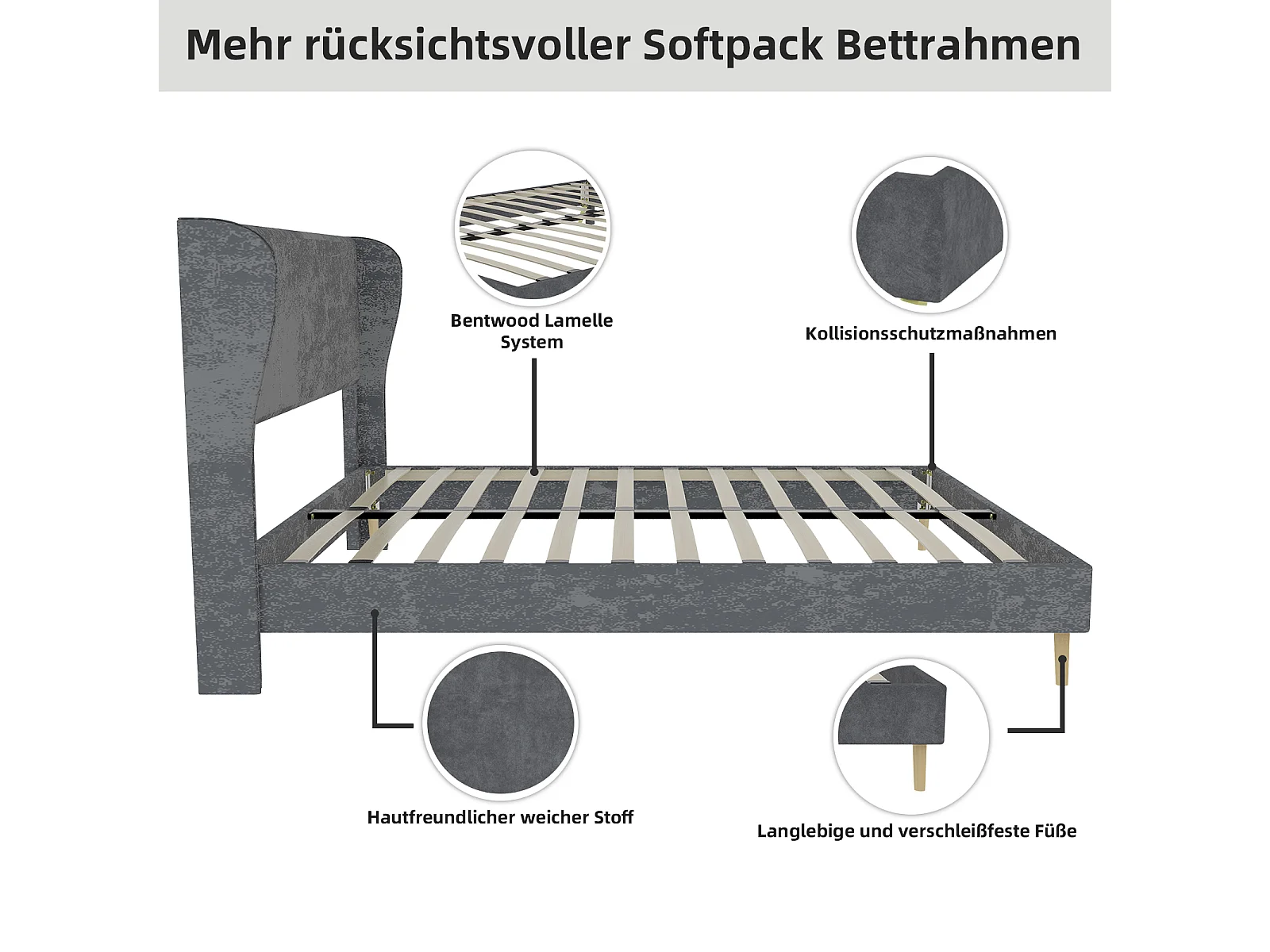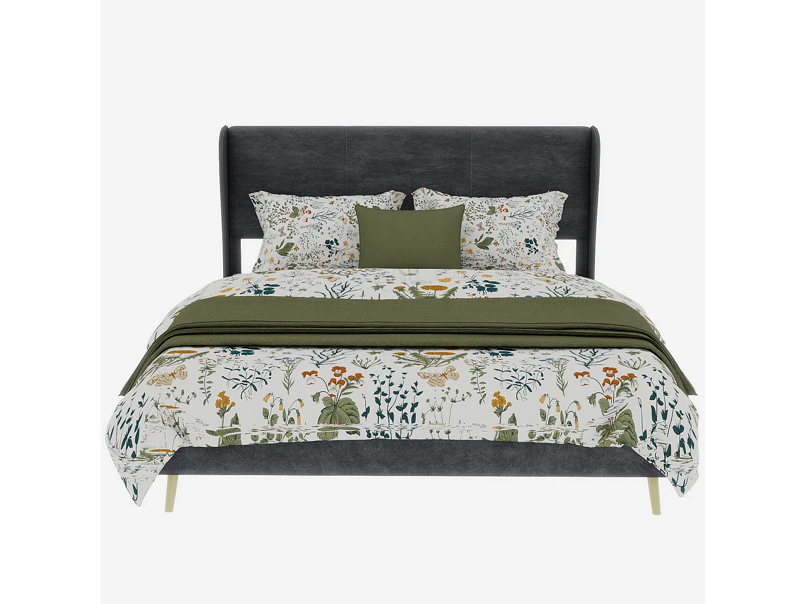 Volwassenenbed 140x200cm in grijs fluweel - Gestoffeerd bed met hoofdbord, matras niet inbegrepen