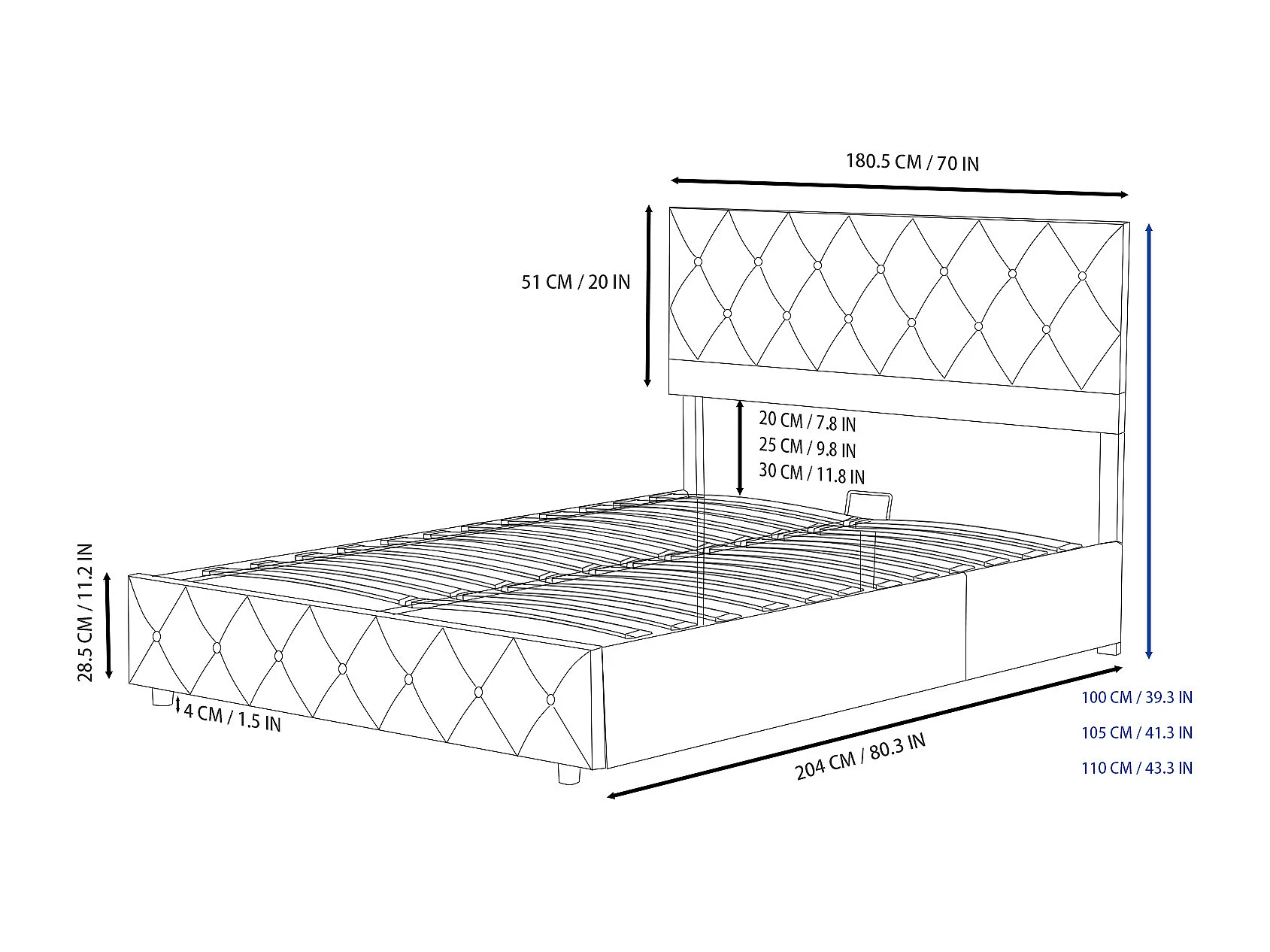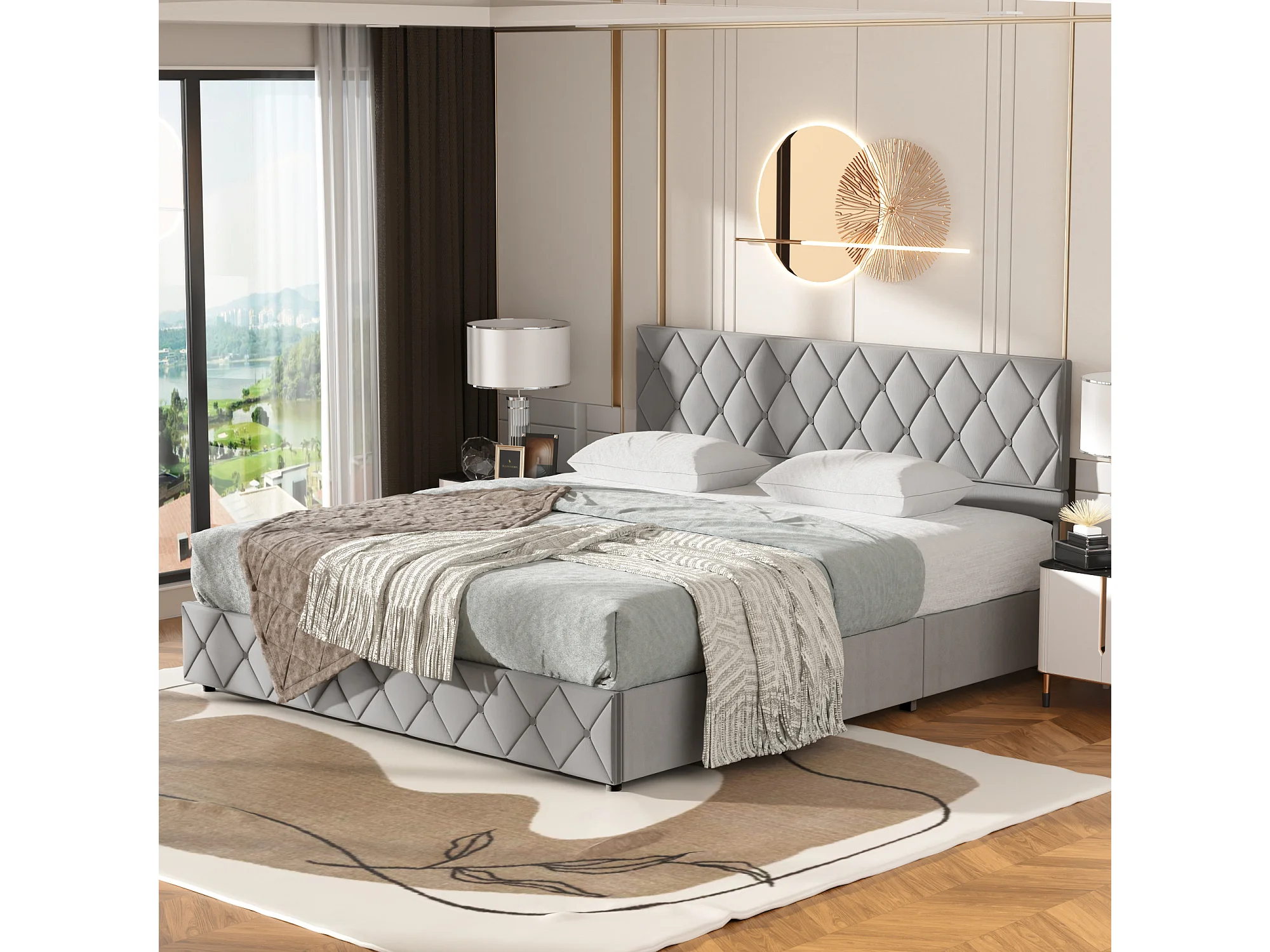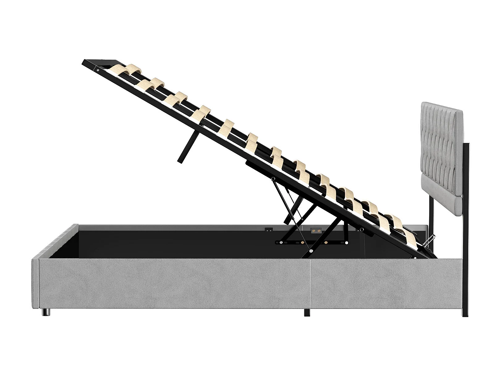 Volwassenenbed met opbergruimte 180x200 cm, verstelbaar hoofdeinde en lattenbodem, elegant en modern, grijs fluweel, matras niet inbegrepen