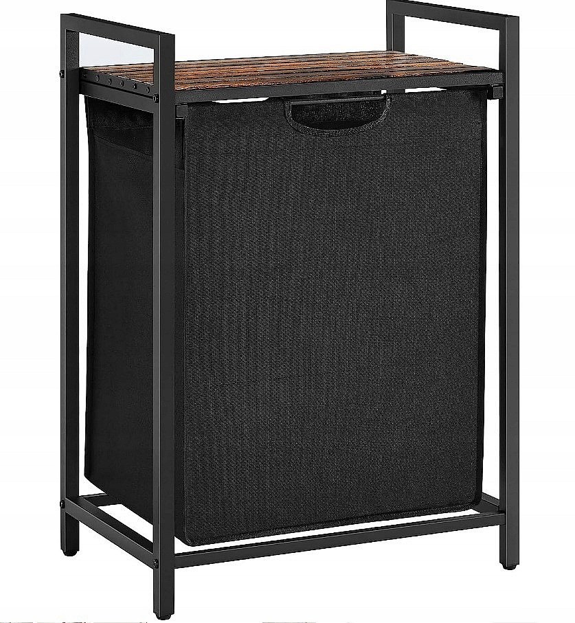 Wasmand met deksel en 72 liter inhoud, bamboe en stof, bruin (40x30x60 cm)