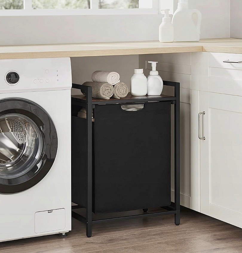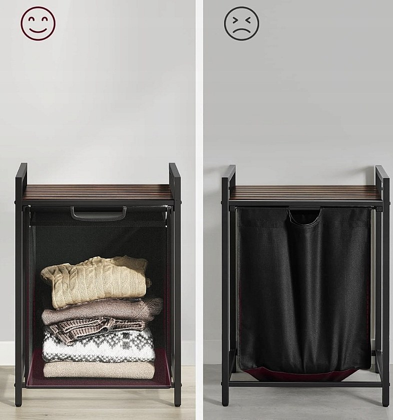 Wasmand met strijkplank, 57,4 l, met 3-laags plank, natuurlijk bamboe (113 x 34 x 82 cm)