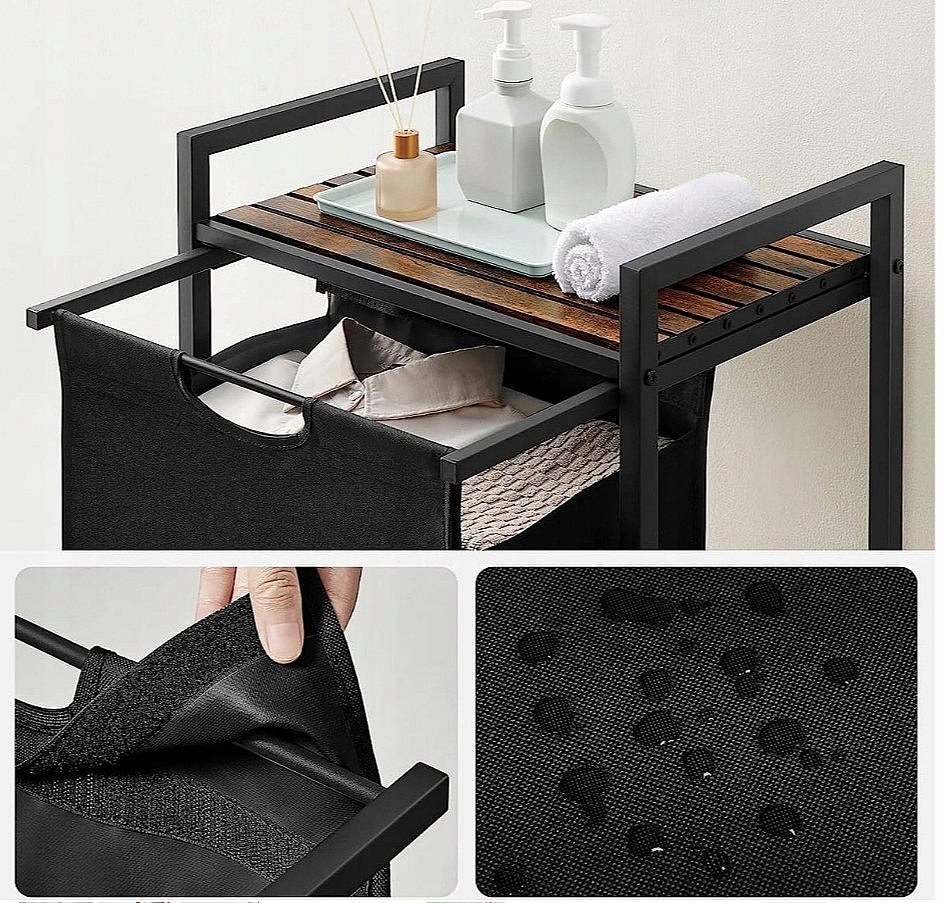 Wasmand met 2 uitneembare zakken, natuurlijk bamboe, compact en praktisch design, crème (63,5x33x73cm)