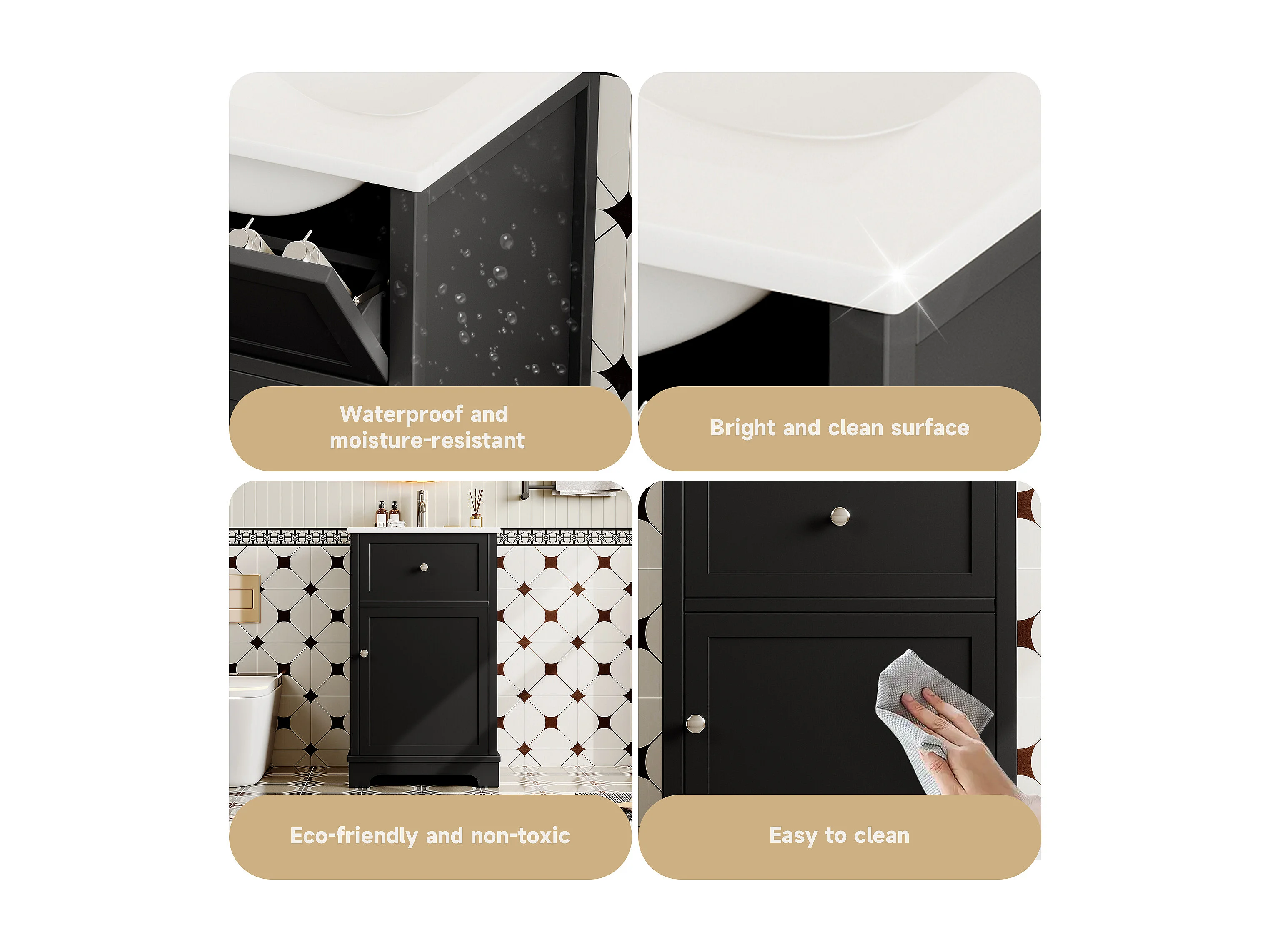 Vrijstaande badkamerkast - Met keramische wasbak + deur + lade - Zwart