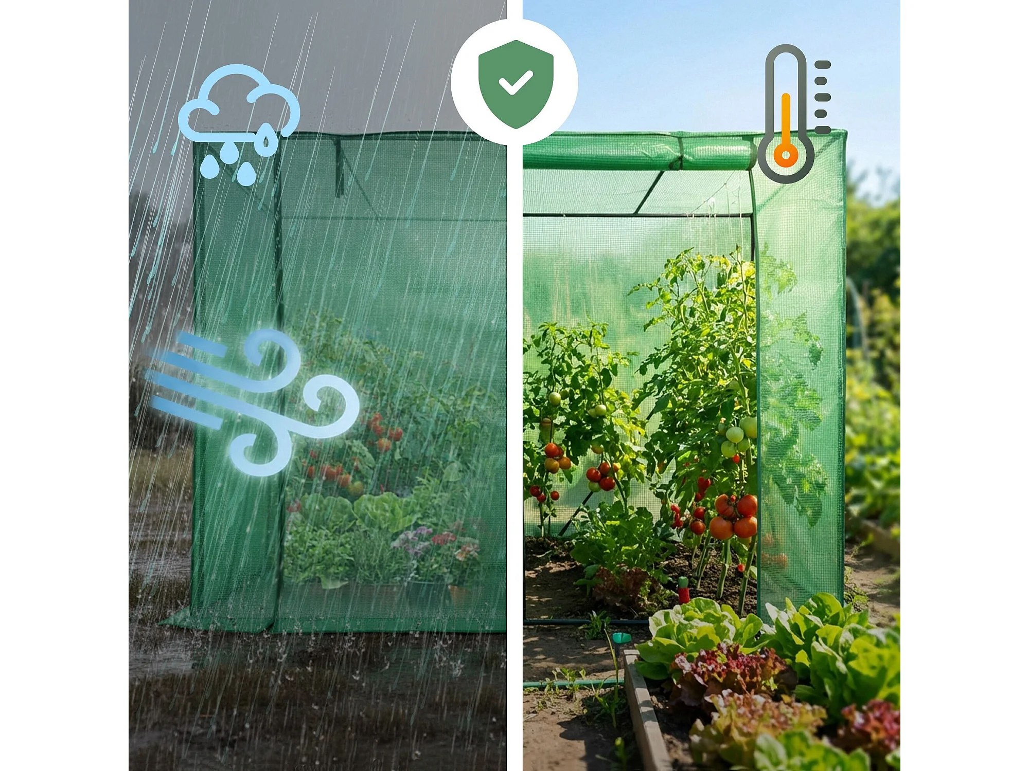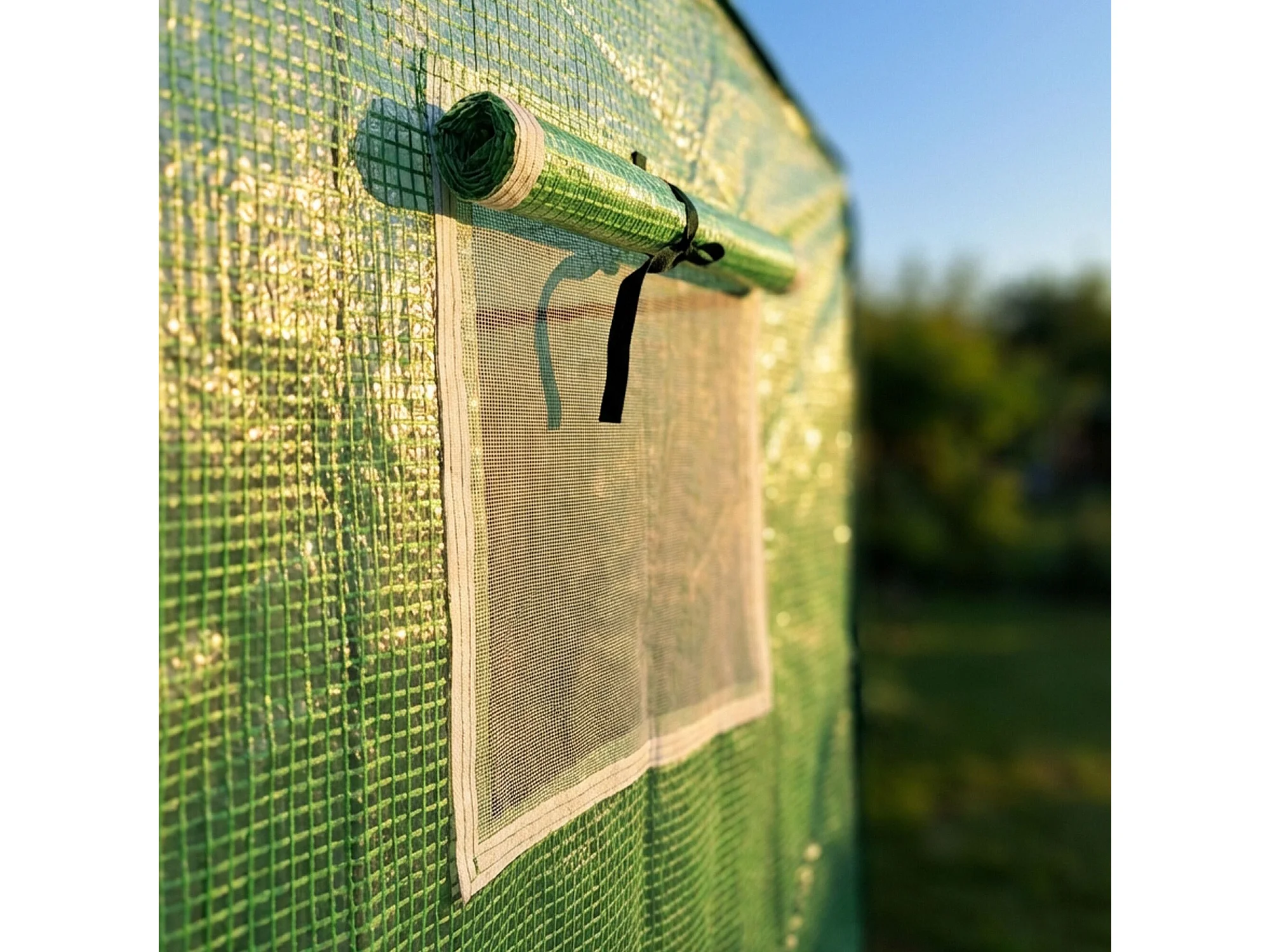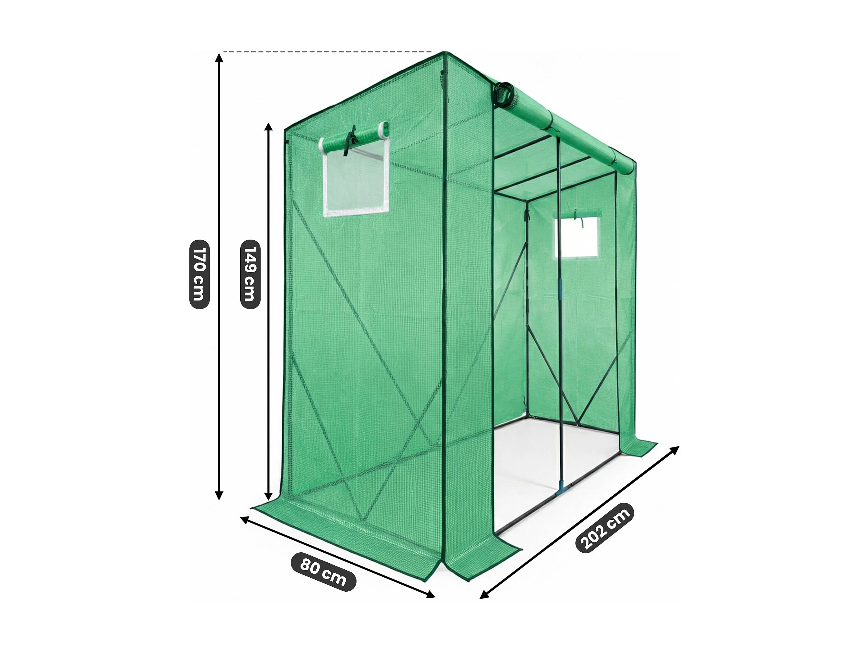 Vrijstaande tuinkas met oprolbare kasdeur / Tuinkas in Huisvorm / Foliekas met 2 Vensters / Groen / 202x80x170 cm