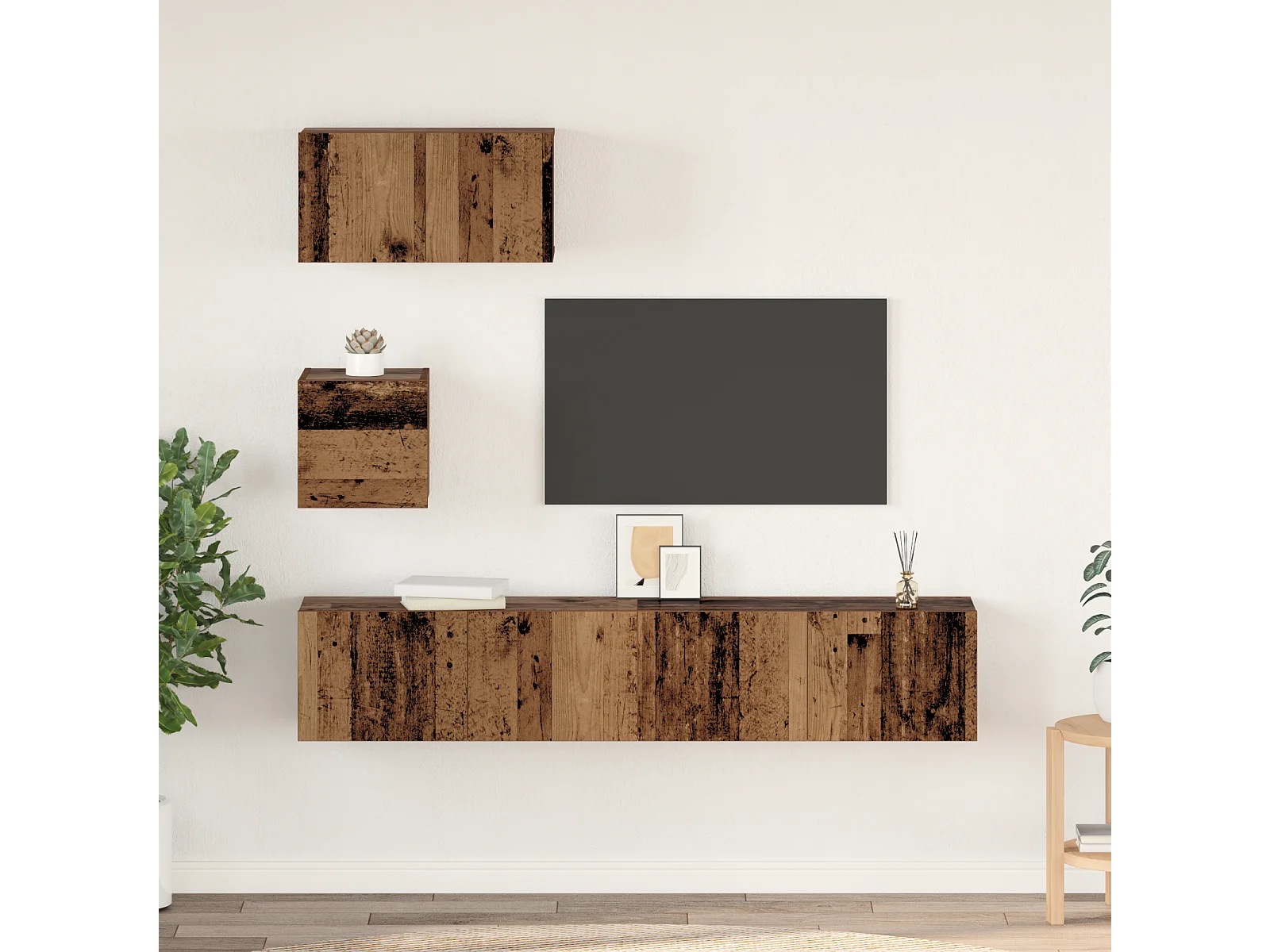 Wand TV kast | Tv-meubel | Tv-Bank 4 pcs Oud hout 80 x 30 x 30.5 cm Bewerkt hout