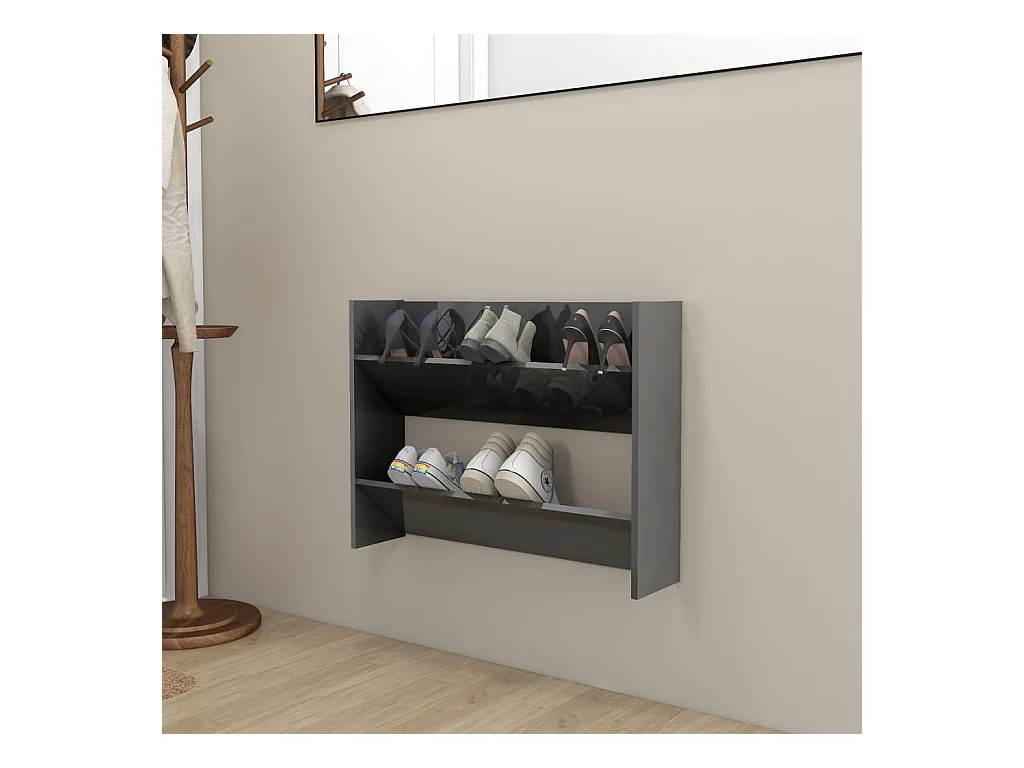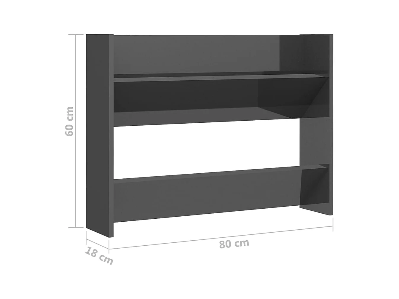 Wandgemonteerde schoenenkast, hoogglans grijs, bewerkt hout