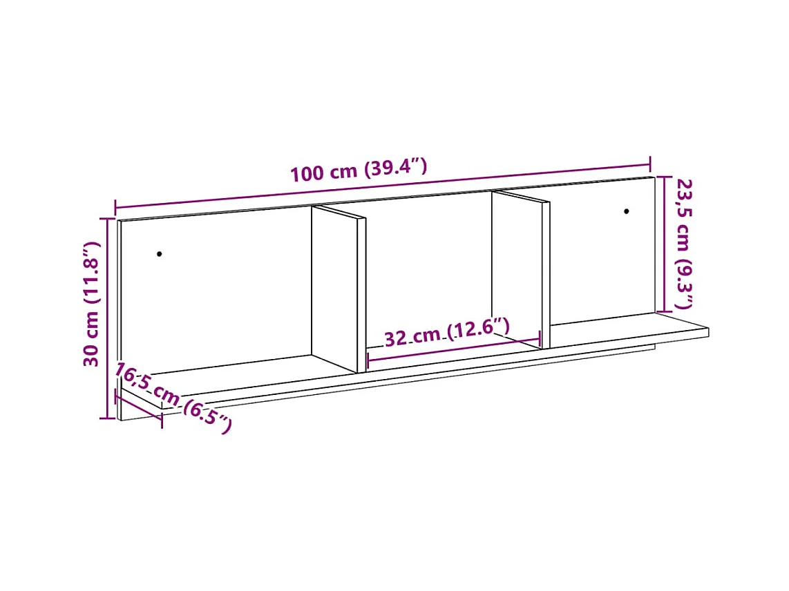 Wandkast 100x16,5x30 cm betongrijs bewerkt hout