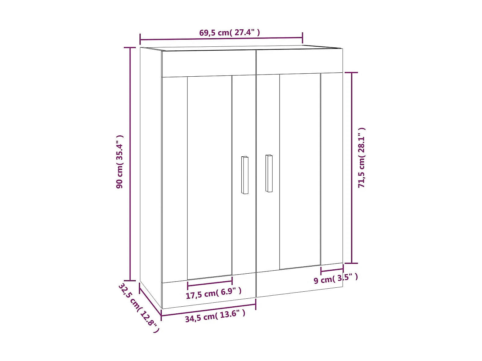 Wandkast 69,5x32,5x90 cm bewerkt hout sonoma eikenkleurig