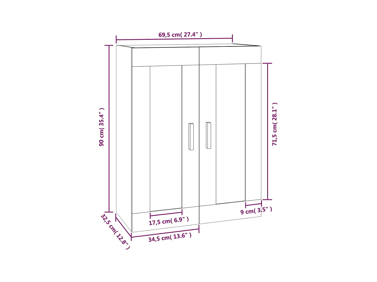 Wandkast 69,5x32,5x90 cm bewerkt hout zwart