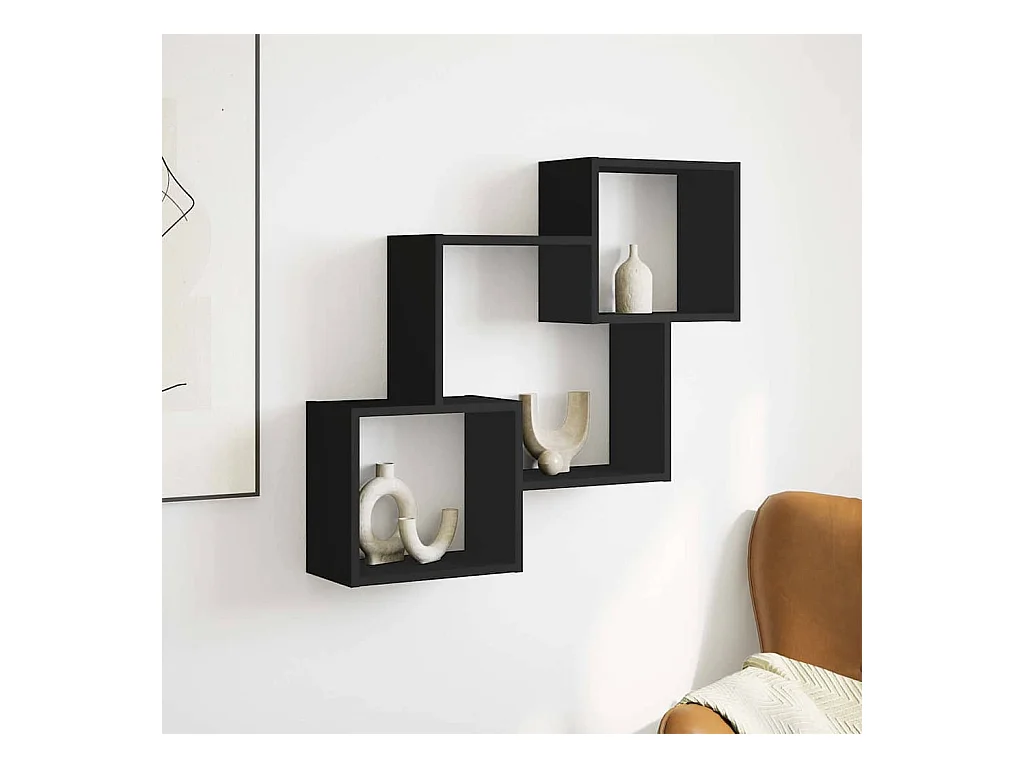 Zwarte eiken wandkast 37 x 37 x 37 cm bewerkt hout