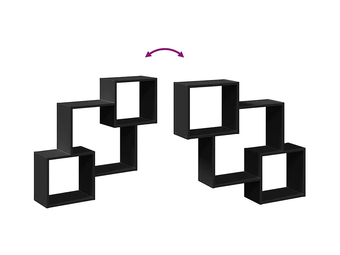 Wandkasten 2 stuks zwart 75x18x16,5 cm bewerkt hout