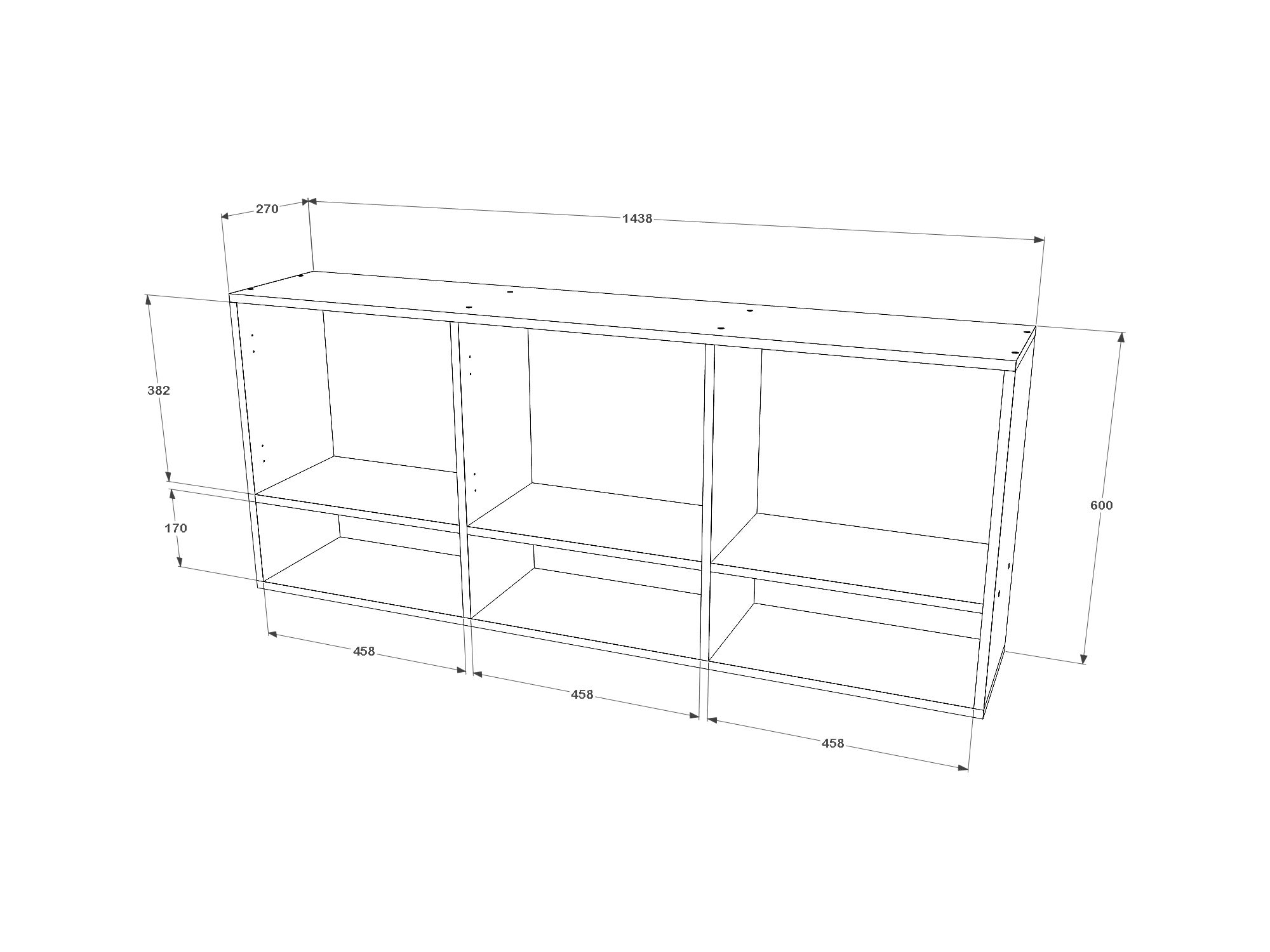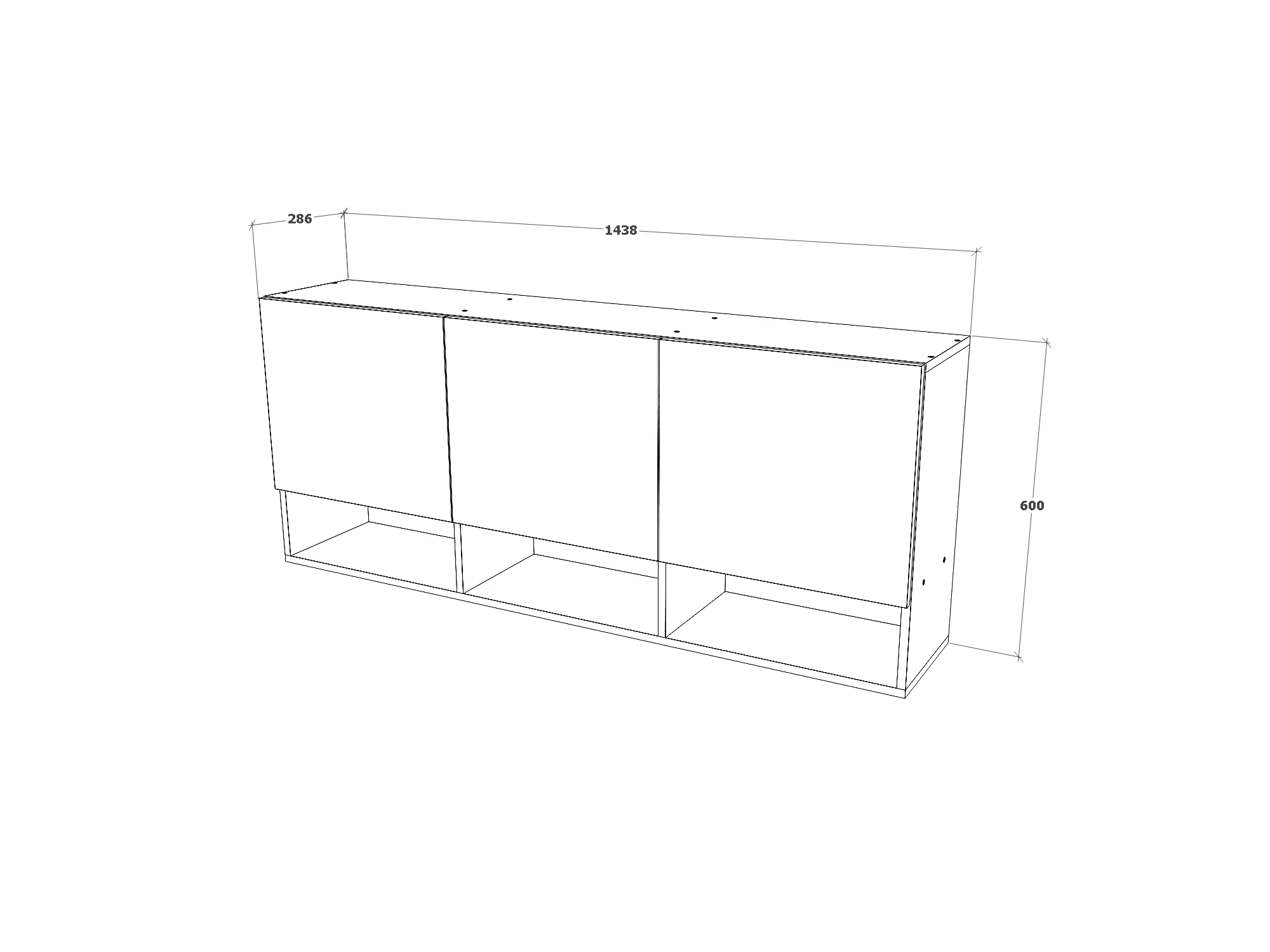 Wandkast Malmo, 3 Deuren, Wit, 144 x 27 x 60 cm