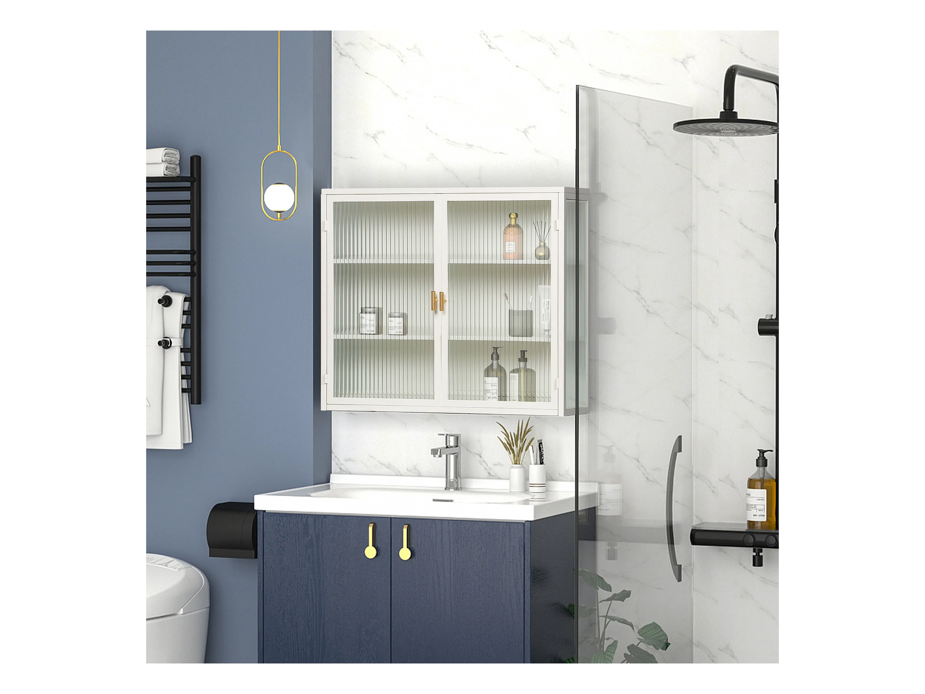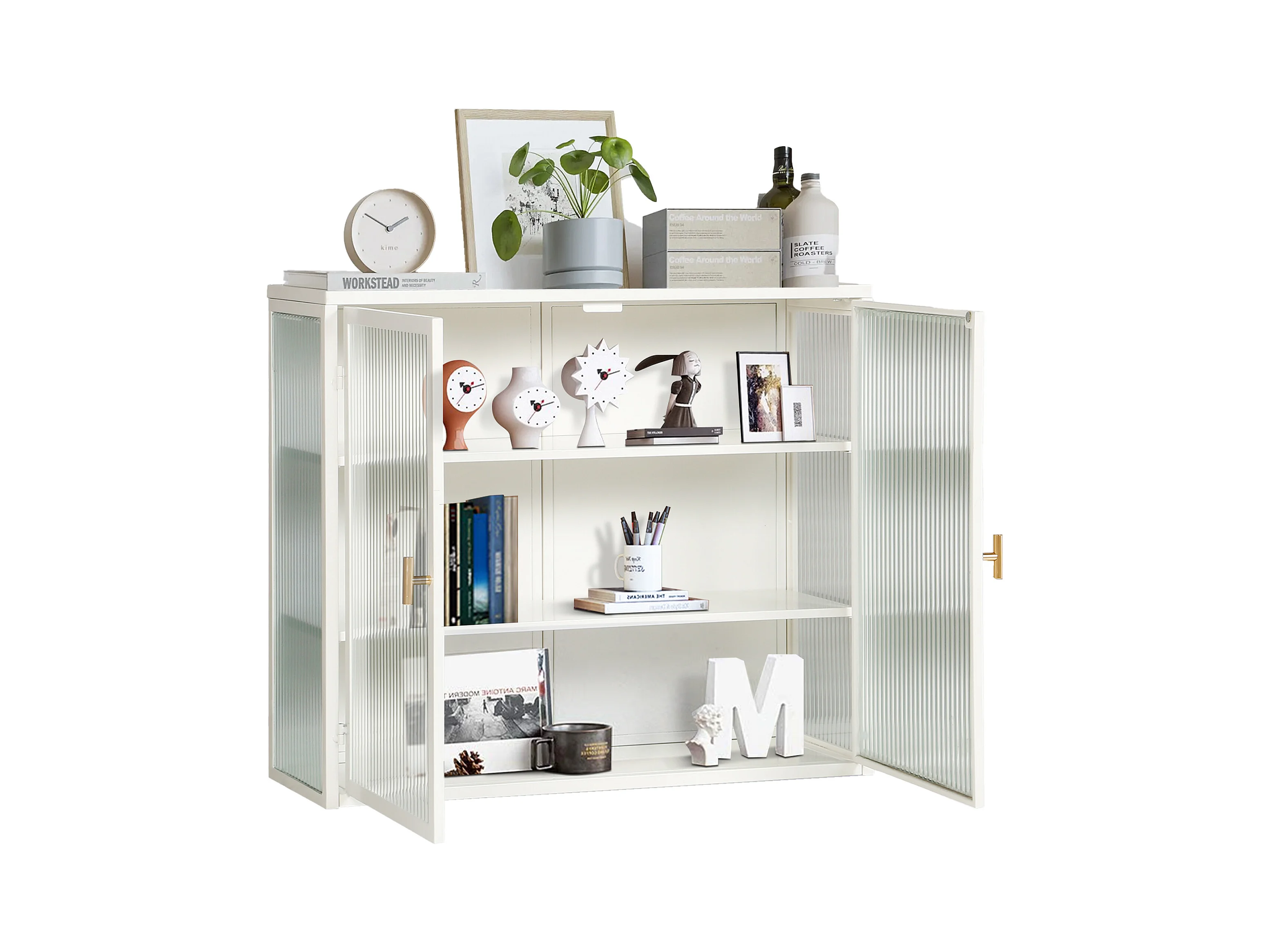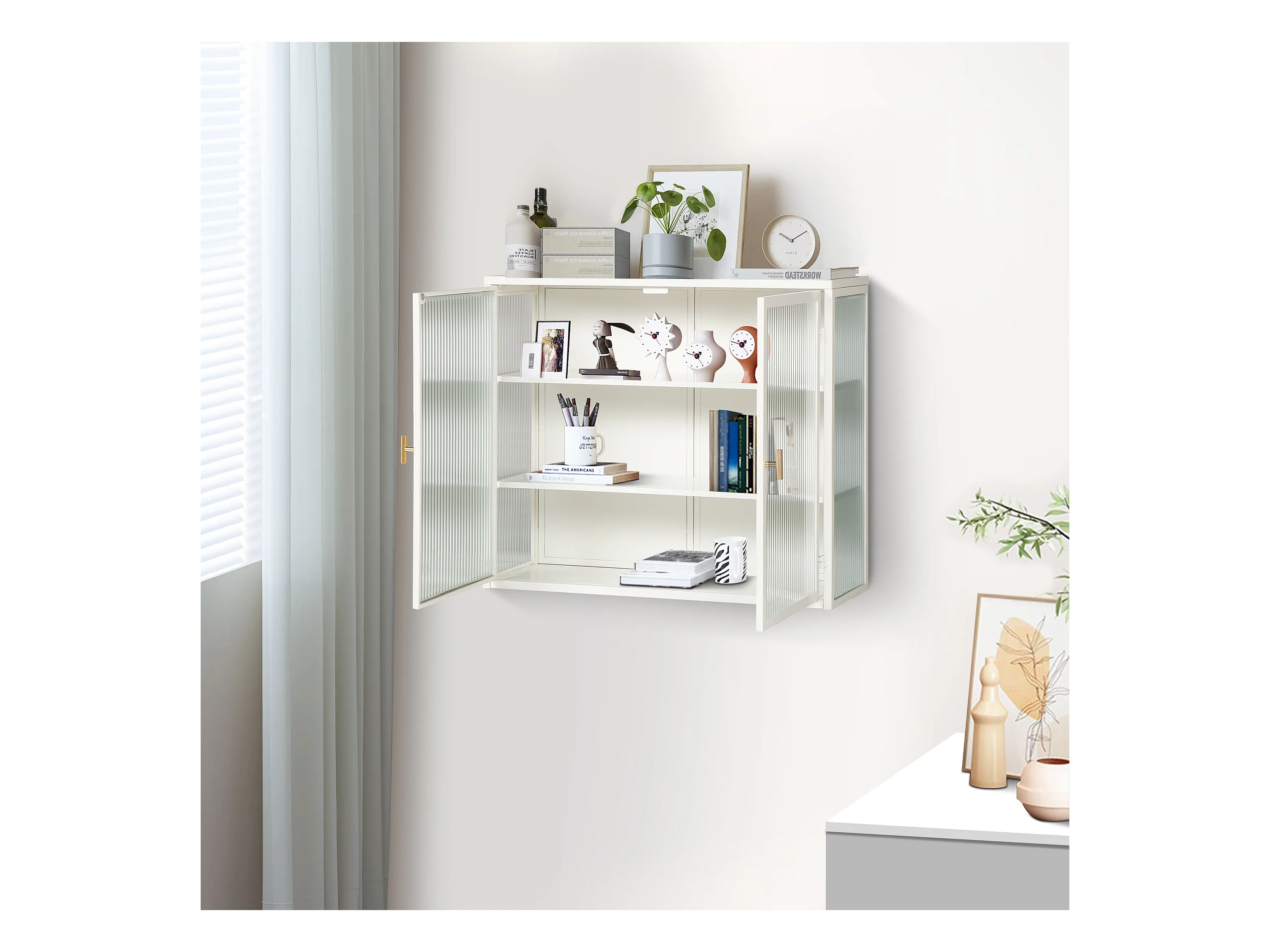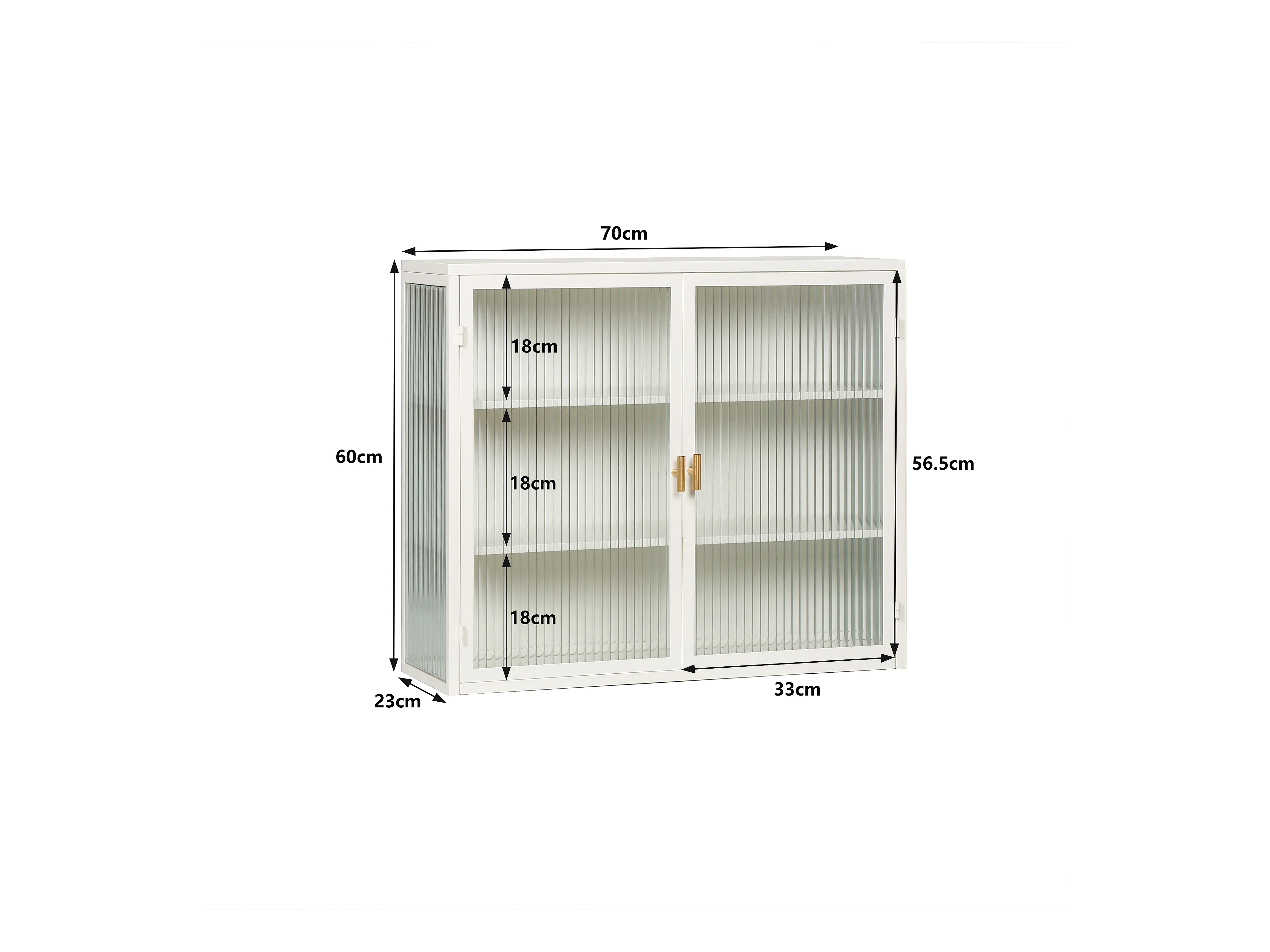 Wandkast met glazen deuren, 2 deuren, 3 opbergniveaus, metaal en glas, antiekwit (70x23,01x59,99 cm)