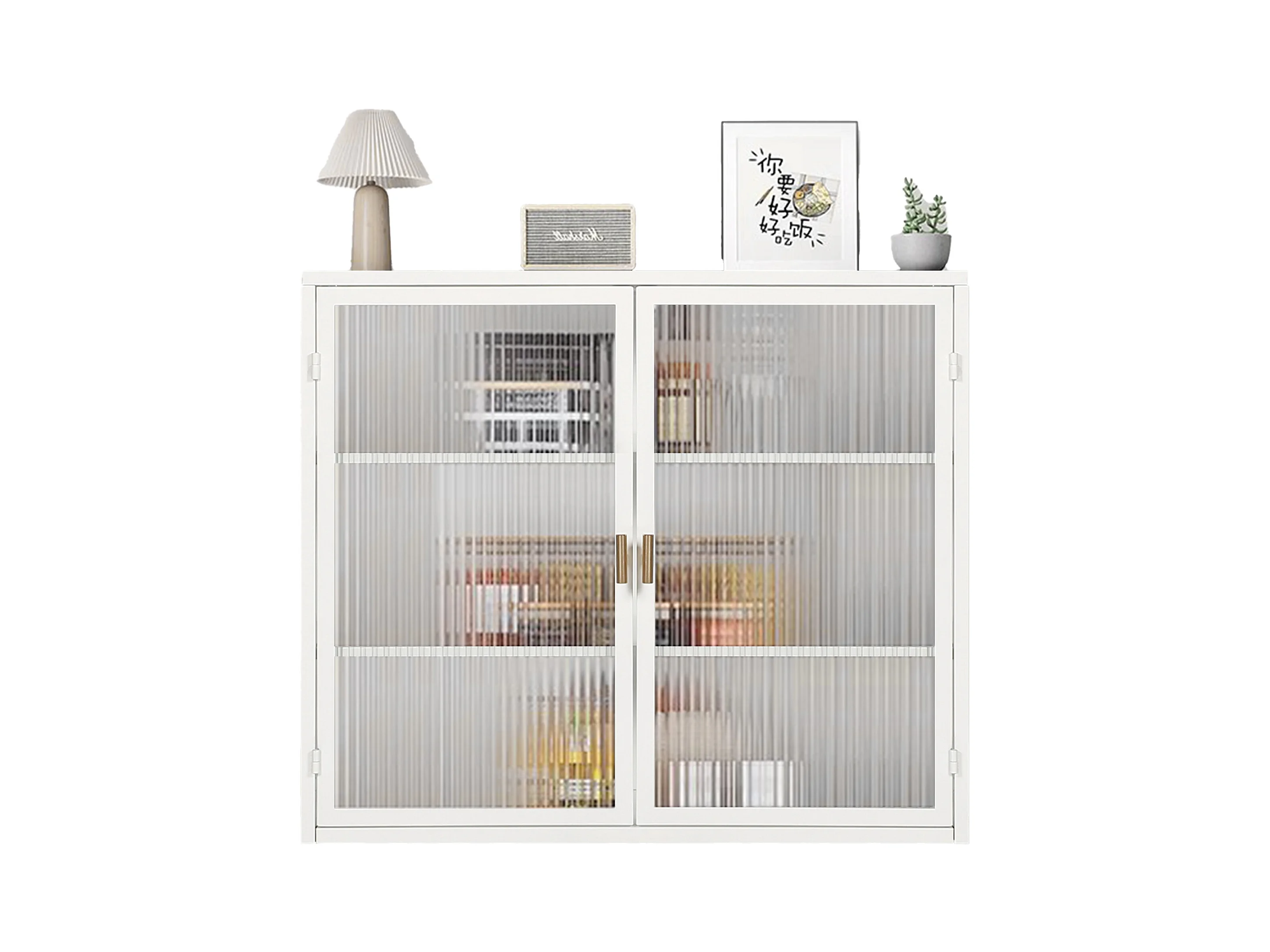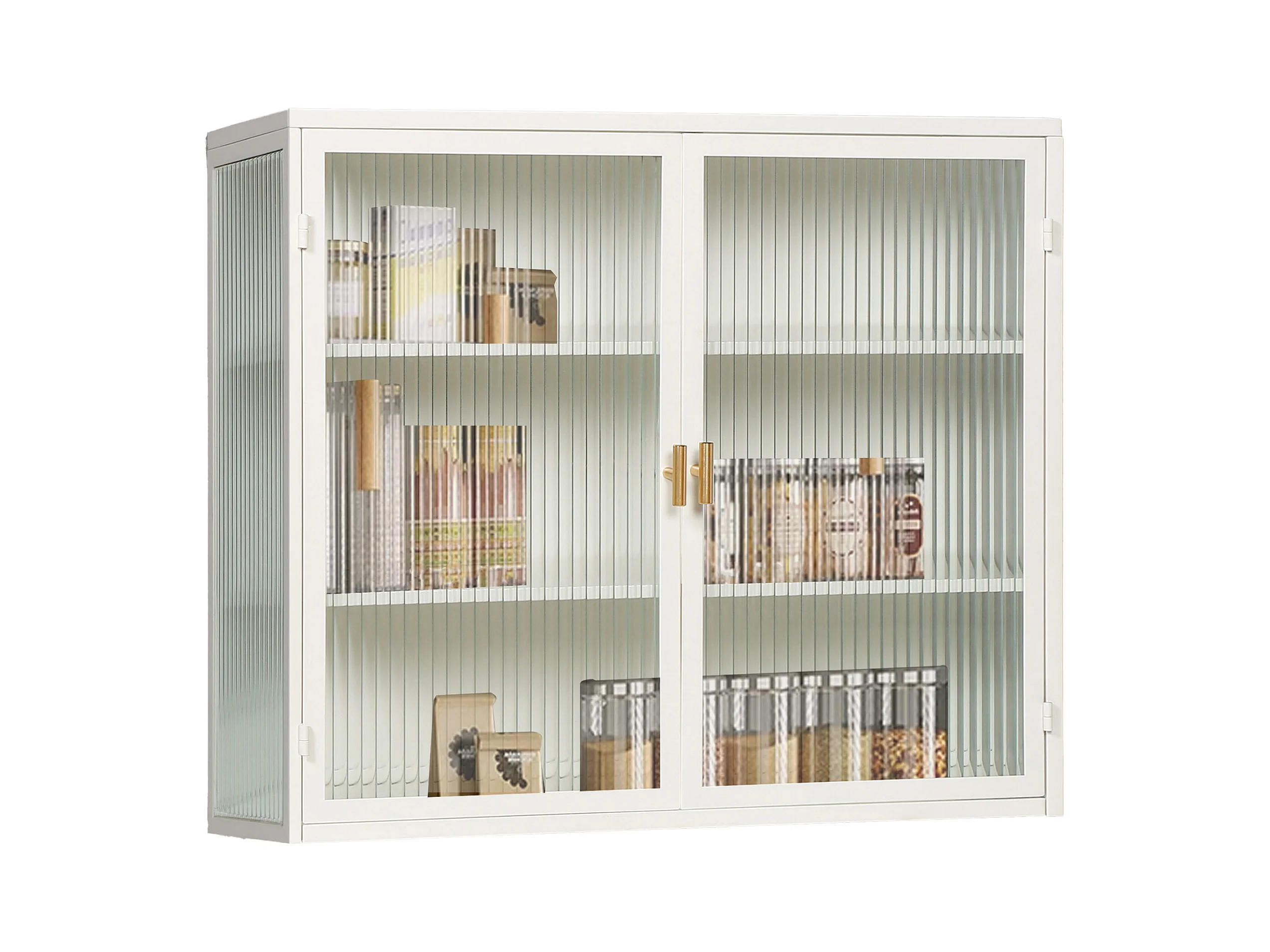 Glazen wandkast met 3 boogdeuren voor keuken, woonkamer en badkamer, metaal en glas, wit (90x19,5x70 cm)