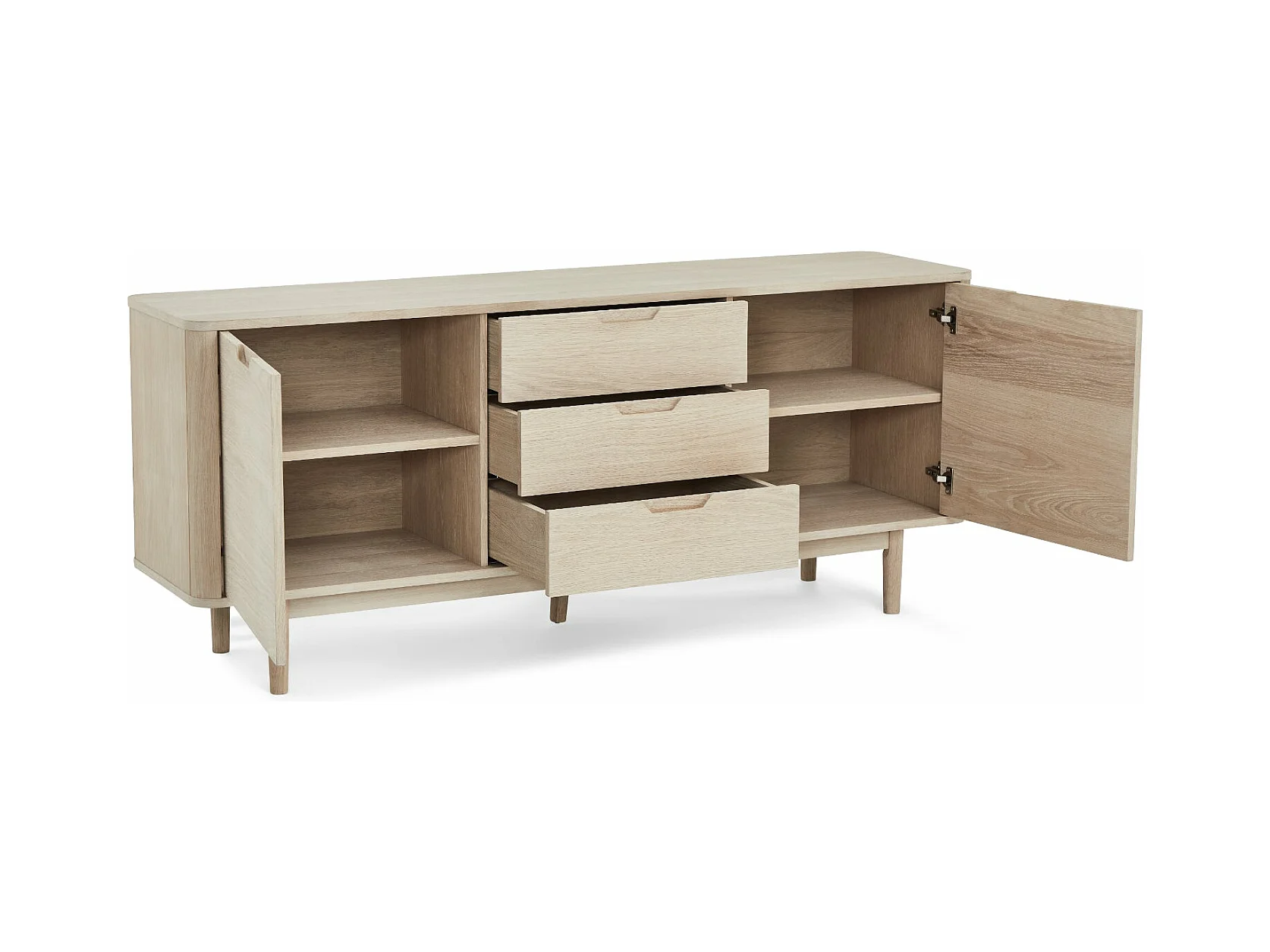 Buffetkast Porto - 3 deuren, 2 laden - Massief eikenhout & MDF - Witte olie