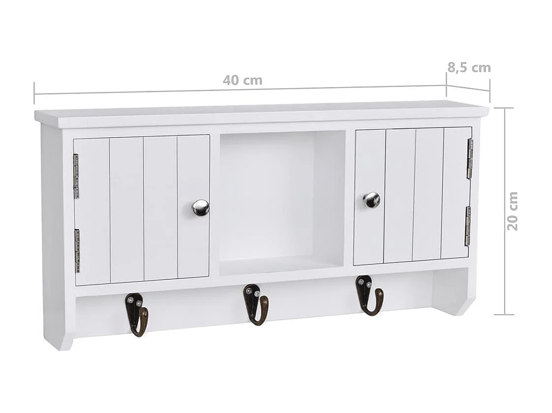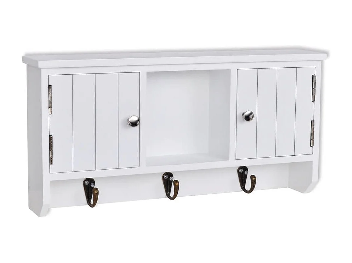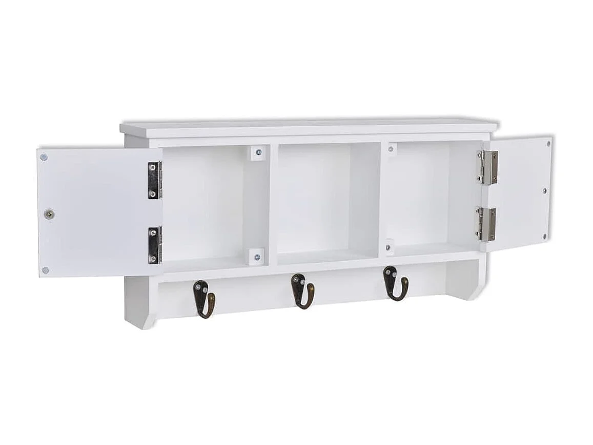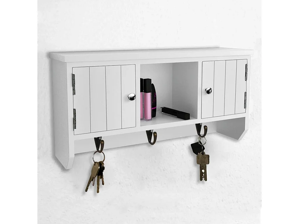 Wandkastje voor sleutels en sieraden met deurtjes en haken