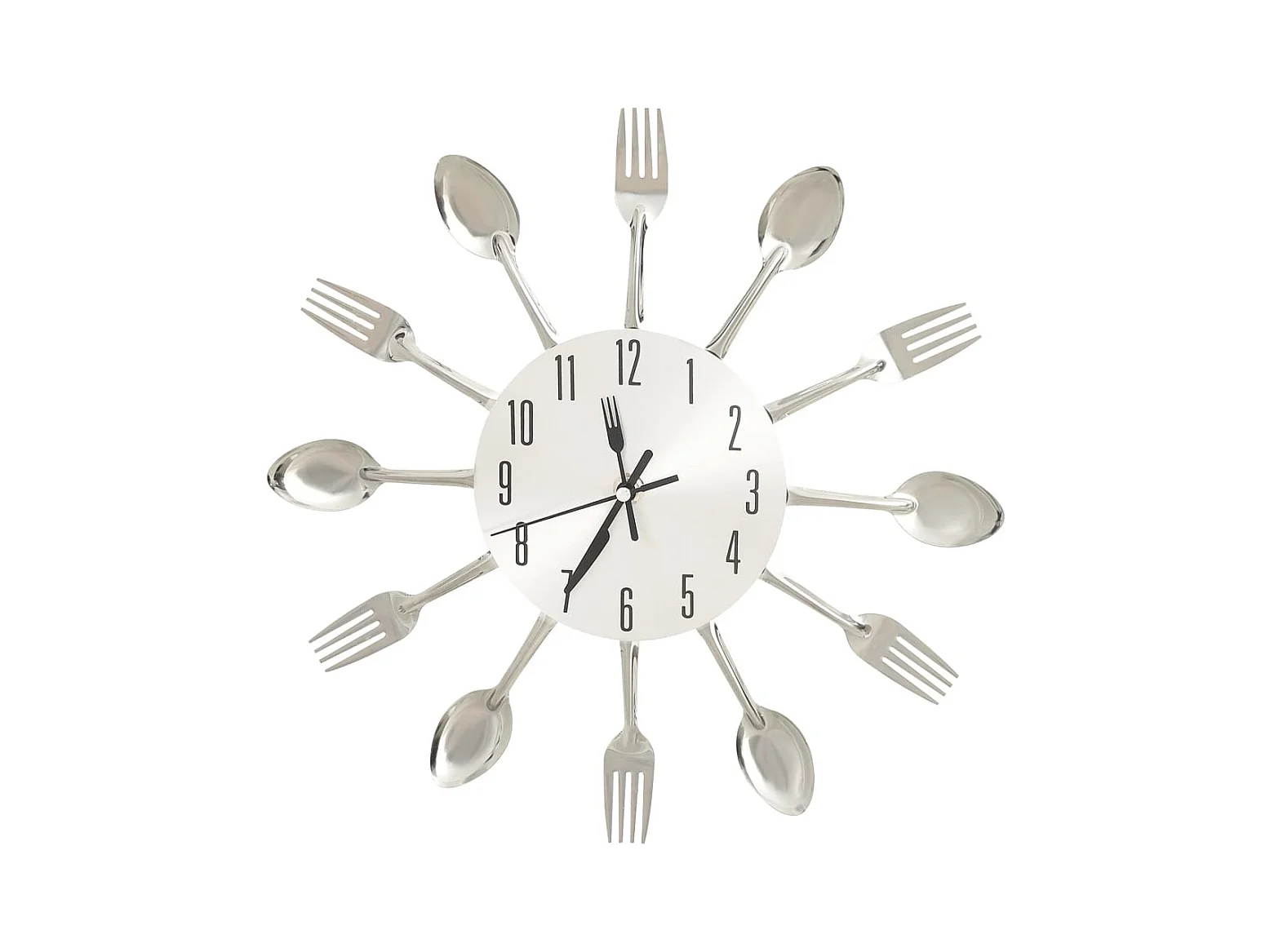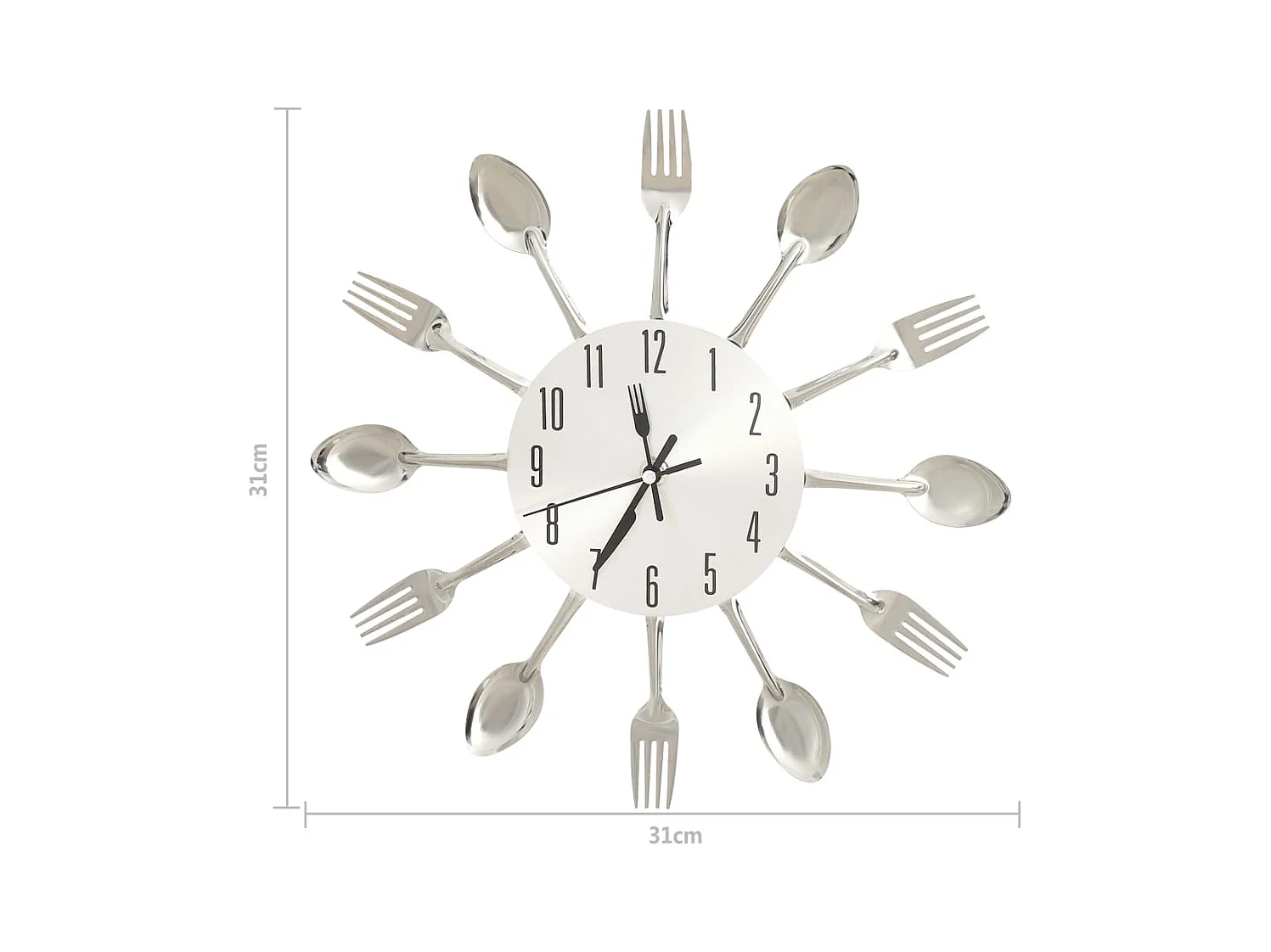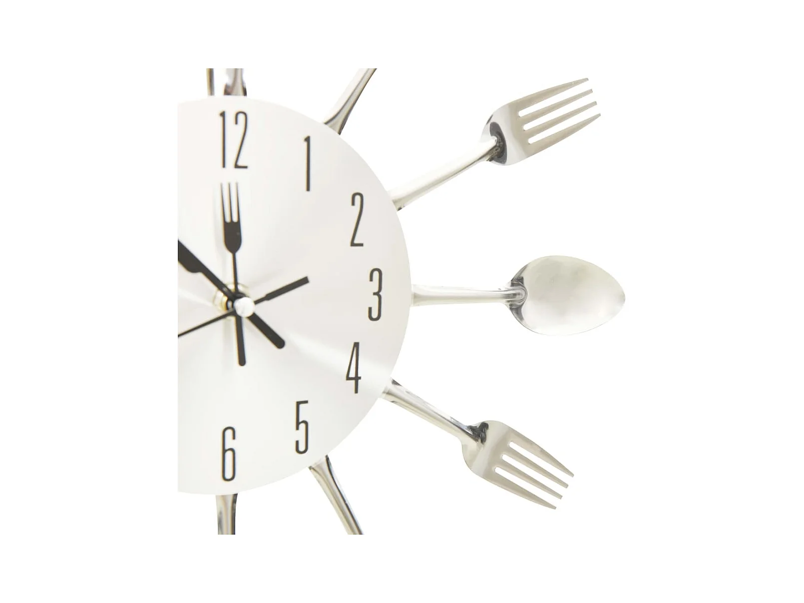 Wandklok en Lepel en Vork Zilver 31cm Aluminium
