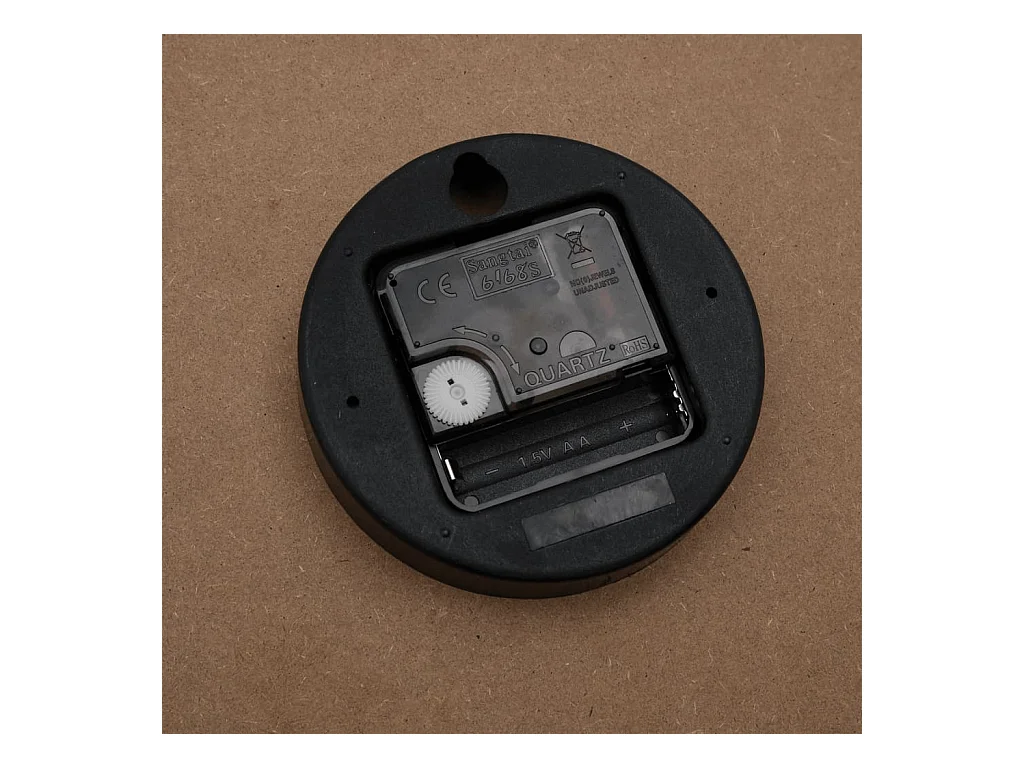Geel-zwarte wandklok Ø30 cm bewerkt hout