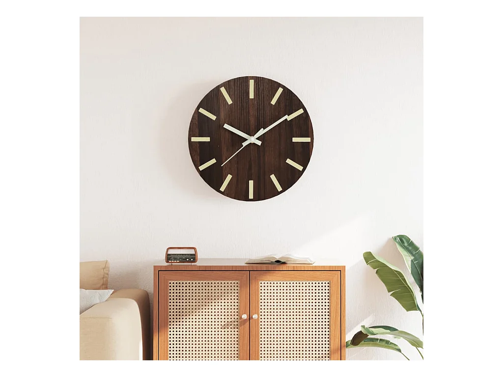 Wandklok met lichtgevende schalen en wijzers, bruin, Ø30cm