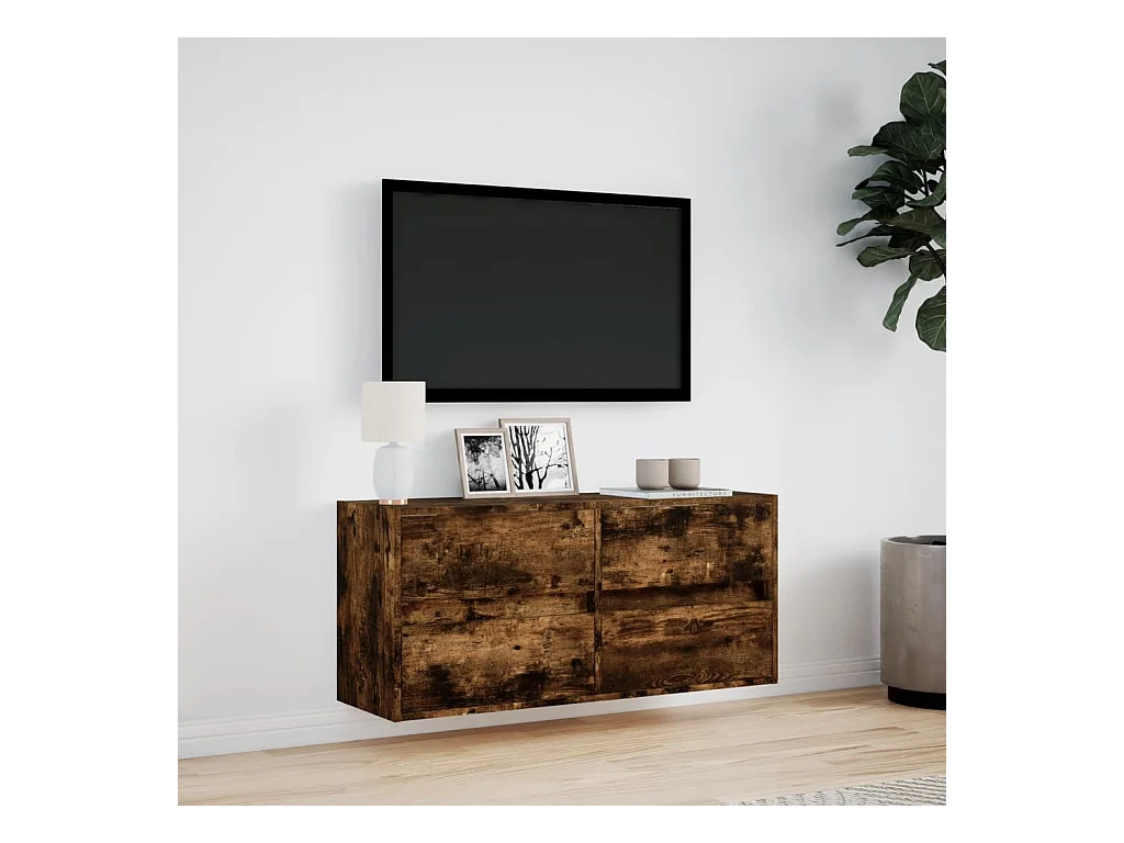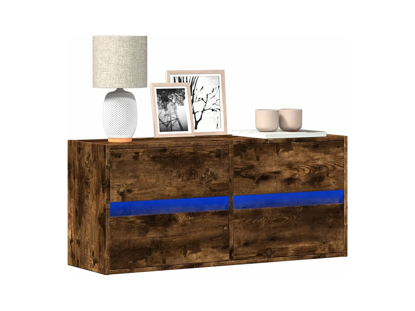 Wandmeubel met LED-verlichting gerookt eiken 100x31x45 cm
