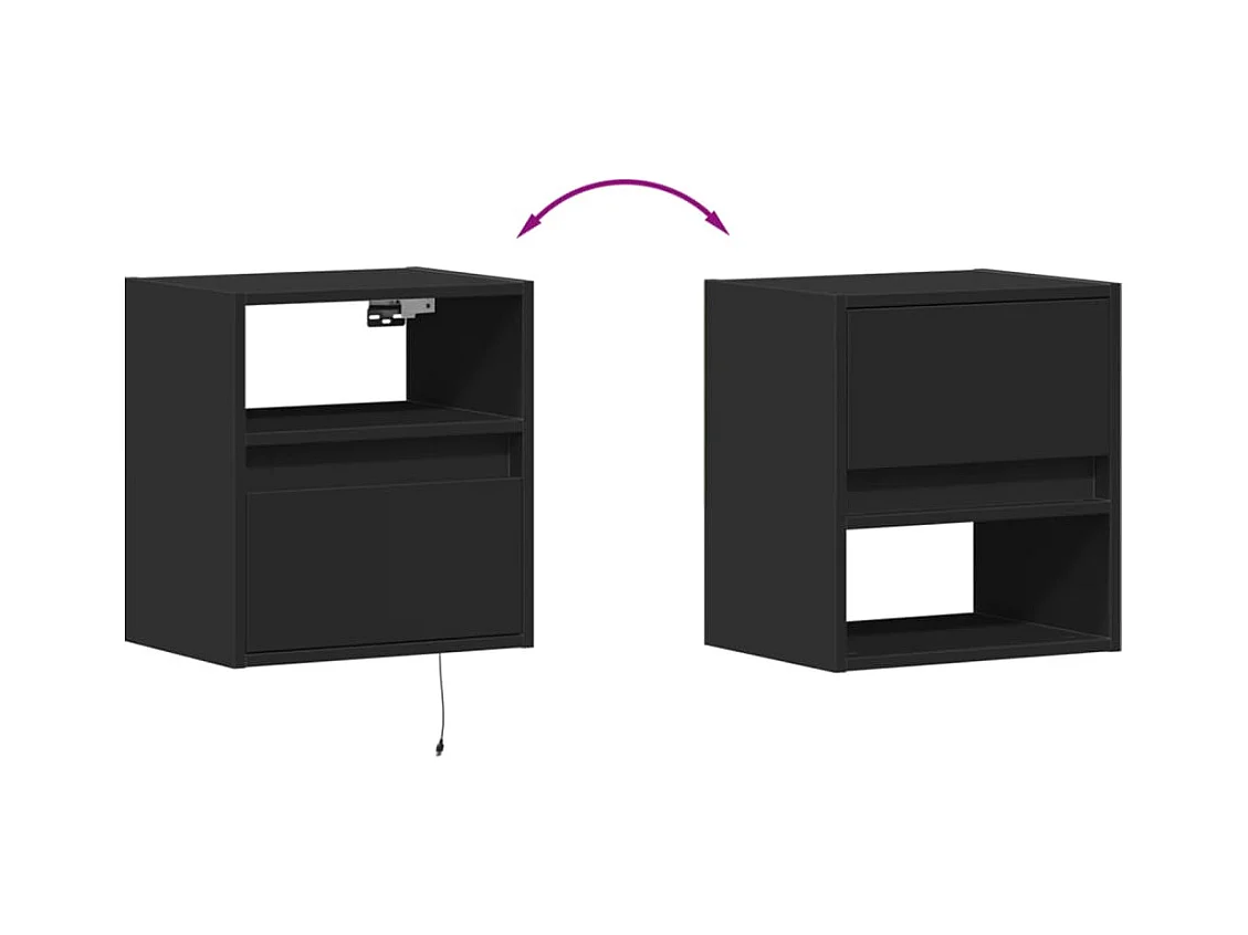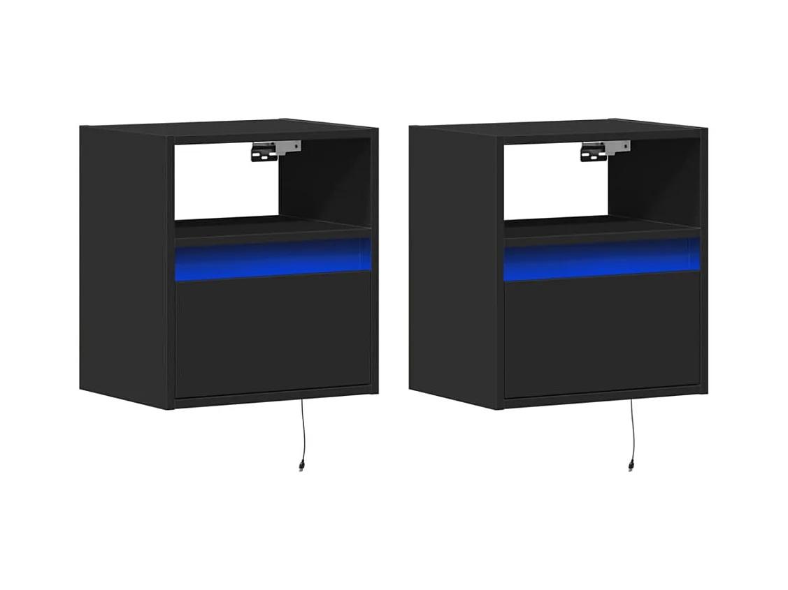 Wandmeubels met LED-verlichting 2 stuks zwart 41x31x45 cm