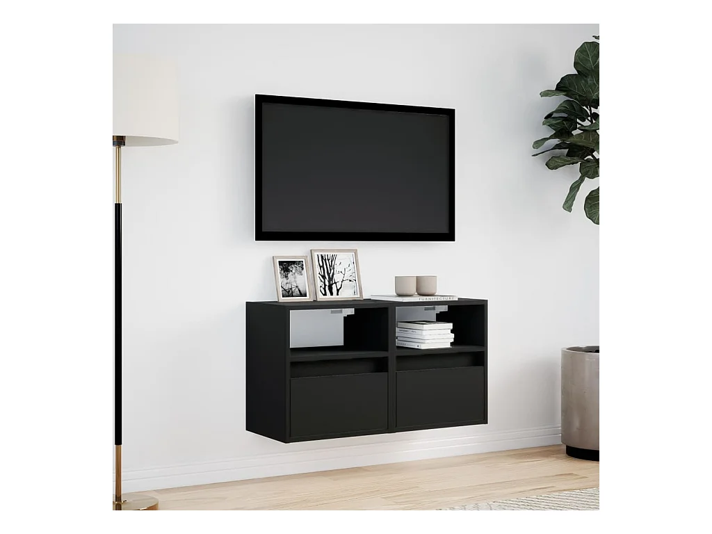 Wandmeubel met LED-verlichting zwart 80x31x45 cm