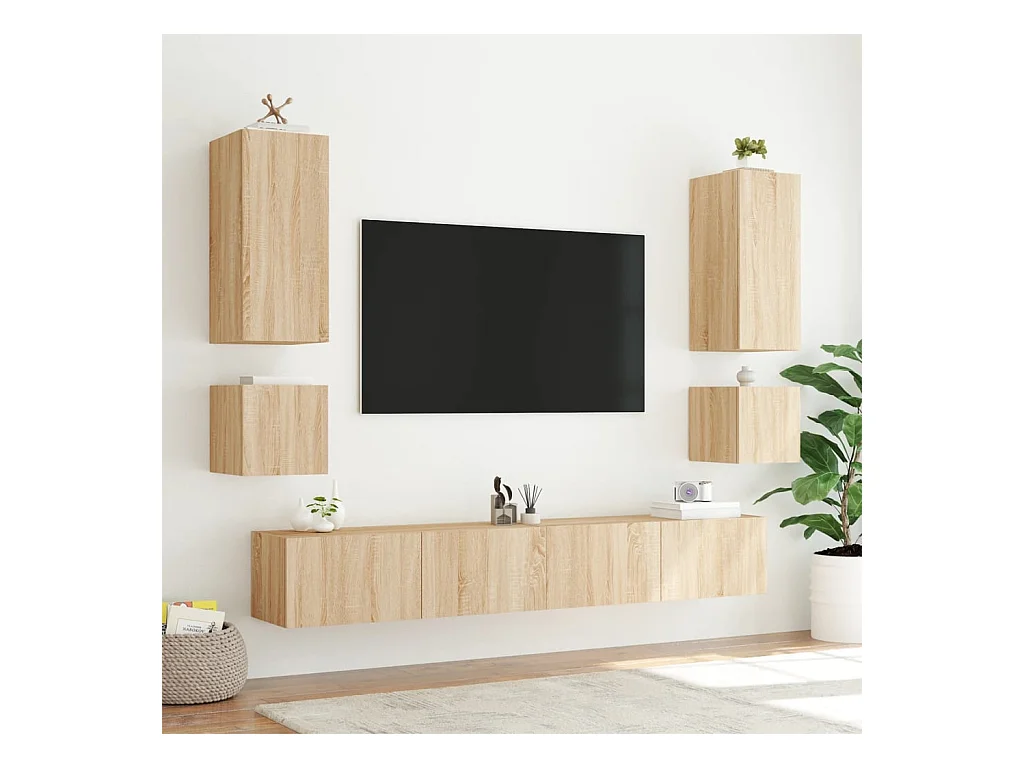 Wandmeubels met ledverlichting, 2 stuks, Sonoma eiken, 40,5x35x40 cm
